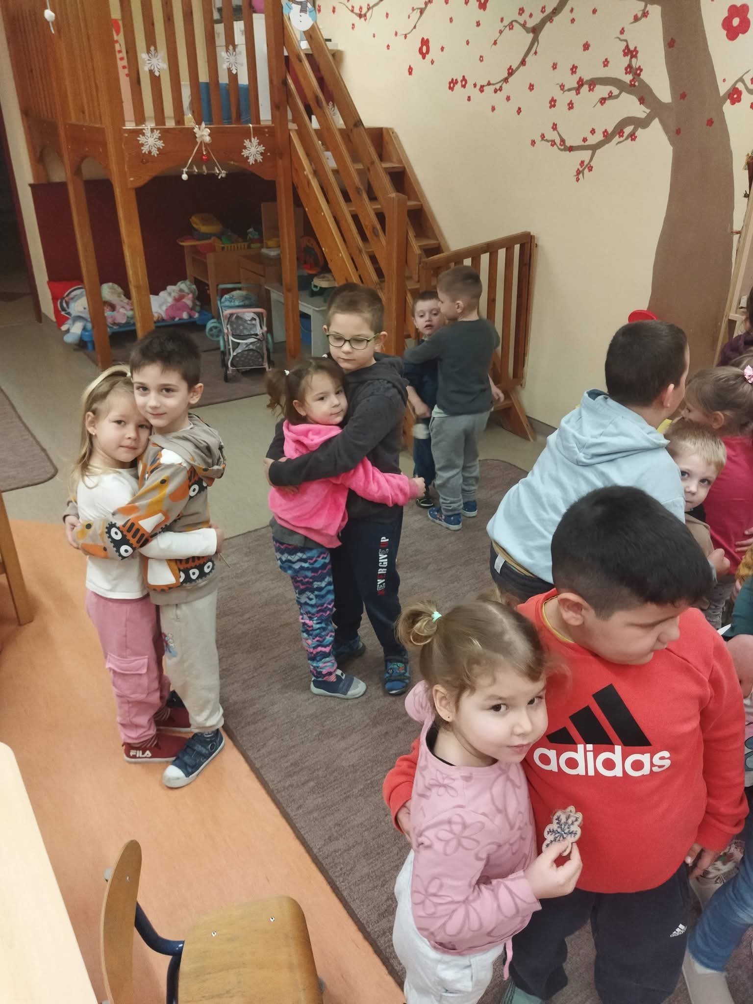 Jó cselekedetek gyakorlása volt a hónap feladata. Karácsony közeledtével a legjobb lehetőség adni, nem csak ajándékot: kedvességet, szeretetet, ölelést. Sokat beszélgettünk erről a gyerekkel, amit nagyon ügyesen el is sajátítottak, de nem csak ezen a héten, hanem az év szinte minden napján. Figyelmesek egymás felé a gyerekek és azonnal segítenek ha cipőt kell kötni, ha cipzárt kell segíteni felhúzni. Nagyon szeretnek egymásnak kedveskedni 1-1 rajzzal, színezővel. Mindent ügyesen megköszönnek. Együtt örülnek a társuk örömének, szeretettel ölelik őket. De ha eltörik a mécses, azonnal mennek simogatni, vigasztalni, legyen az felnőtt vagy gyerek. Imádnak segíteni a csoport életének szebbé tételében. Beszélgettünk a karácsonyi ajándékozásról is, ők mivel nem tudnak vásárolni a szeretetüket, puszikat és szép rajzokat adnak a szüleiknek és testvéreiknek. Volt aki mézeskalácsot készít az anyukájával, segít begyúrni, kiszaggatni és szépen kidíszíteni, ezt adják szeretteiknek. Sokat énekelgettünk kedves dalokat, legfőképpen karácsonyi témájúakat. Ünnepek közeledtével késztettünk a Süni csoportos gyerekeknek karácsonyfa díszt, melyet szépen kifestettek és strassz kövekkel díszítettek. Nagy volt az öröm a kicsik részéről.