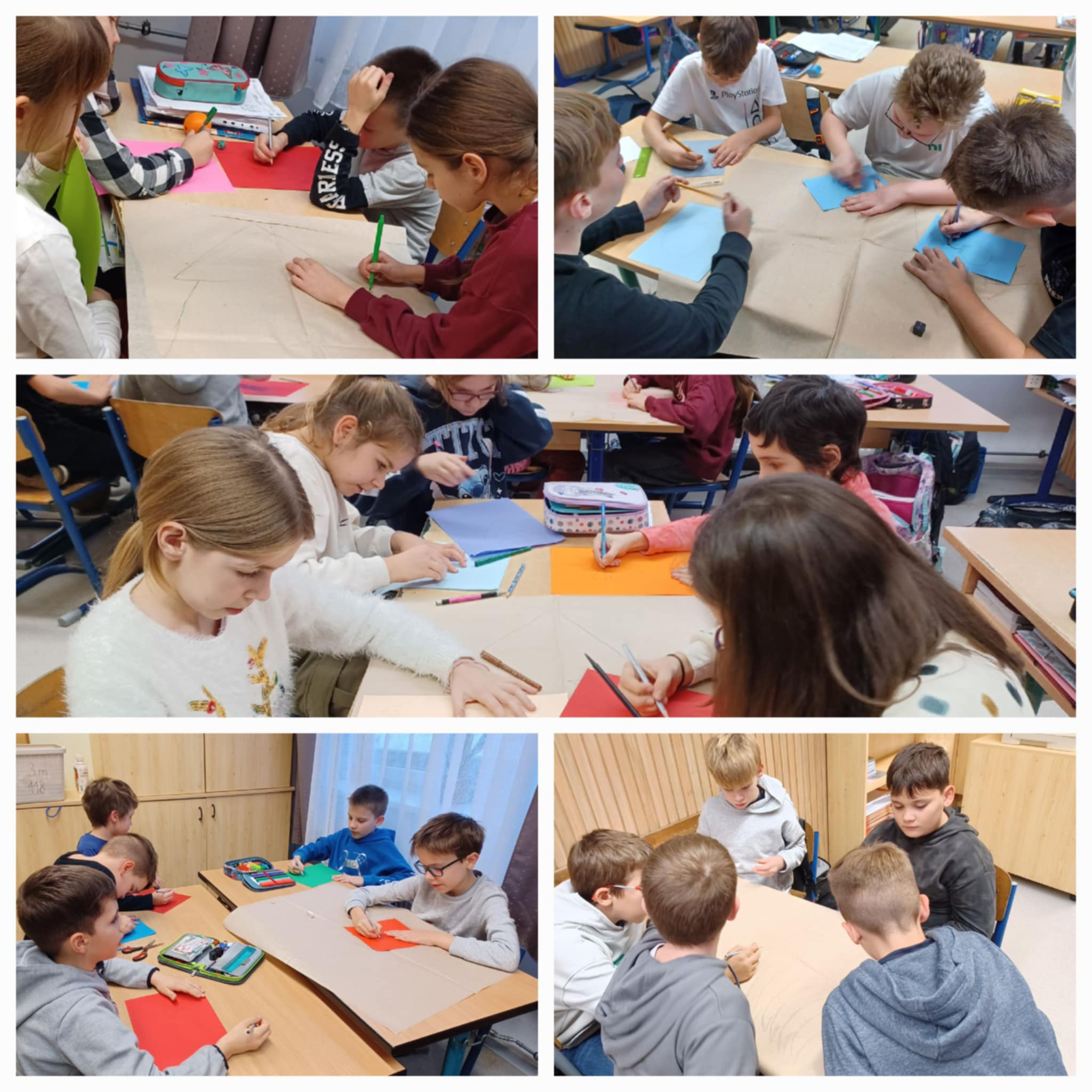 Természetesen a kreatív feladat sem maradhatott ki. Csoportokban csomagolópapírra megrajzoltak egy színes fenyőfát, melyekre olyan díszek kerültek, melyen személyes jótetteket hajtottak végre.
