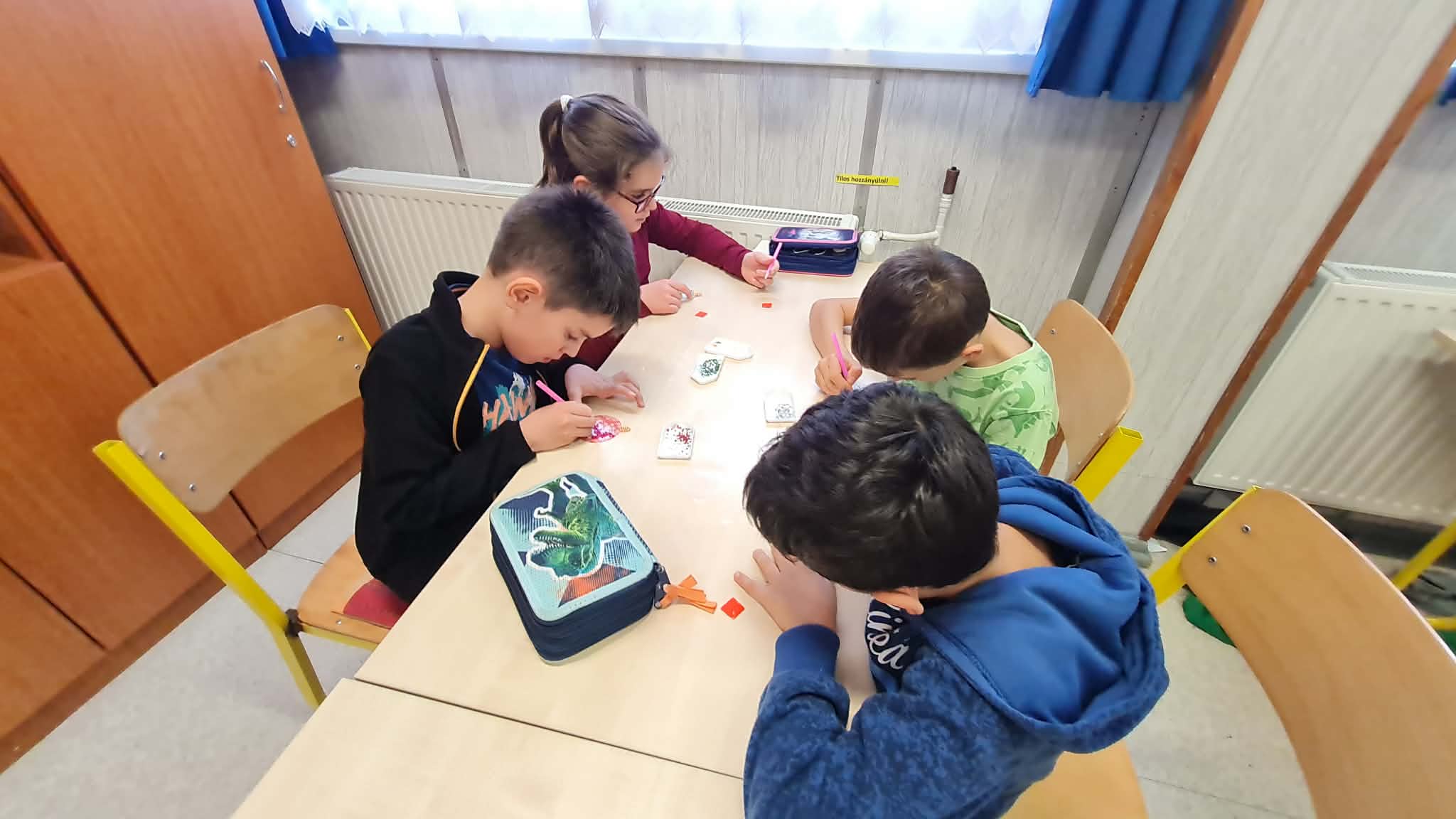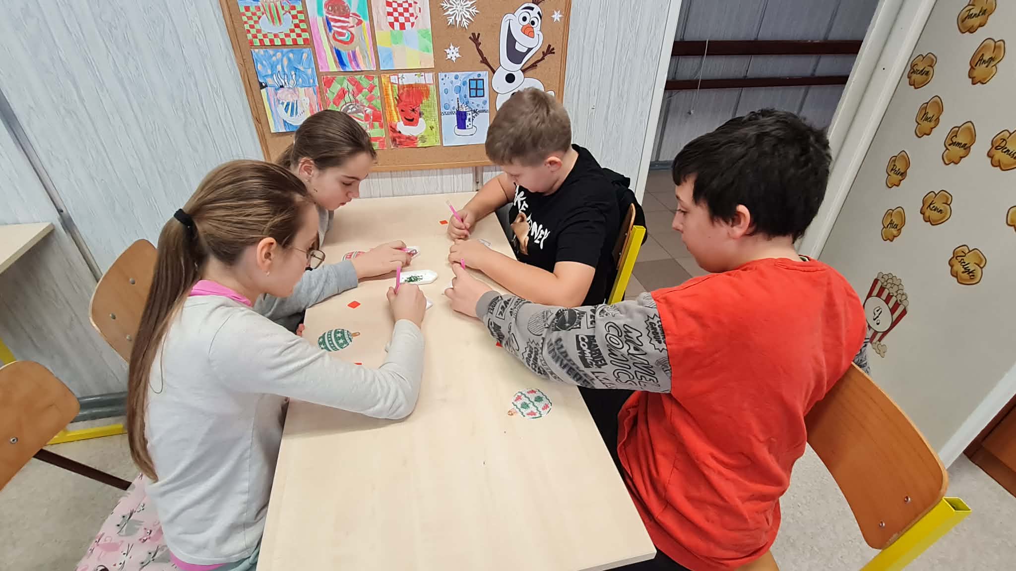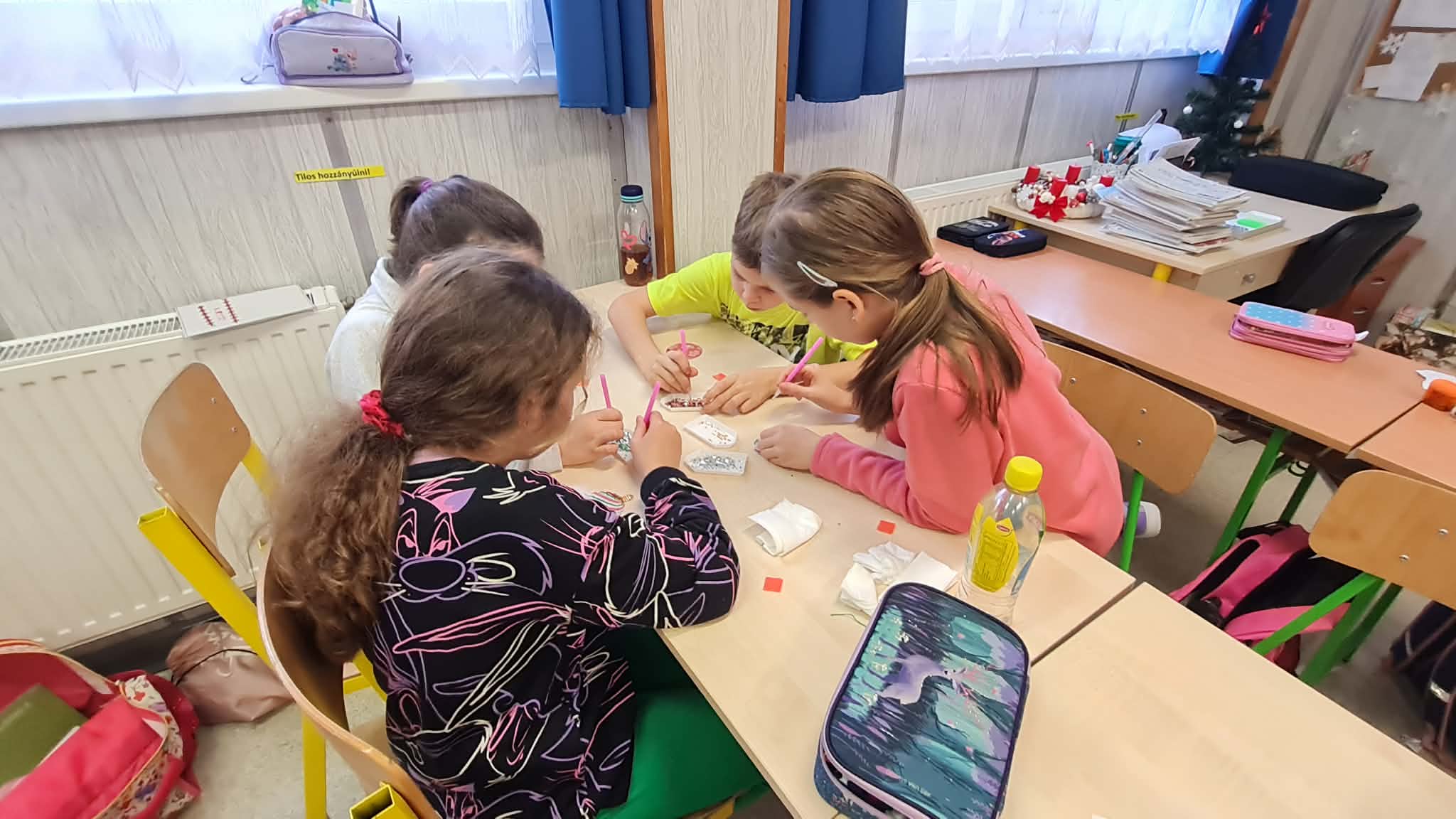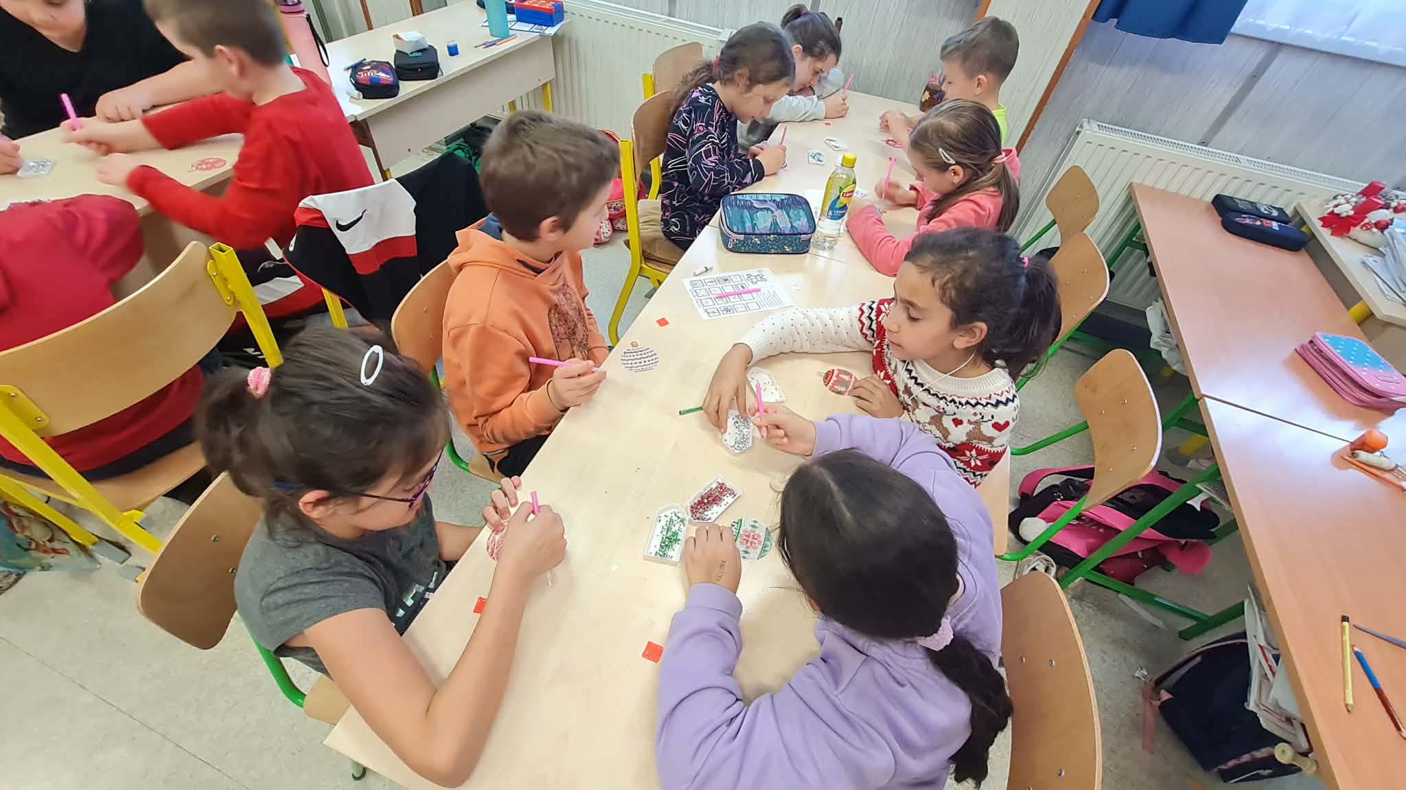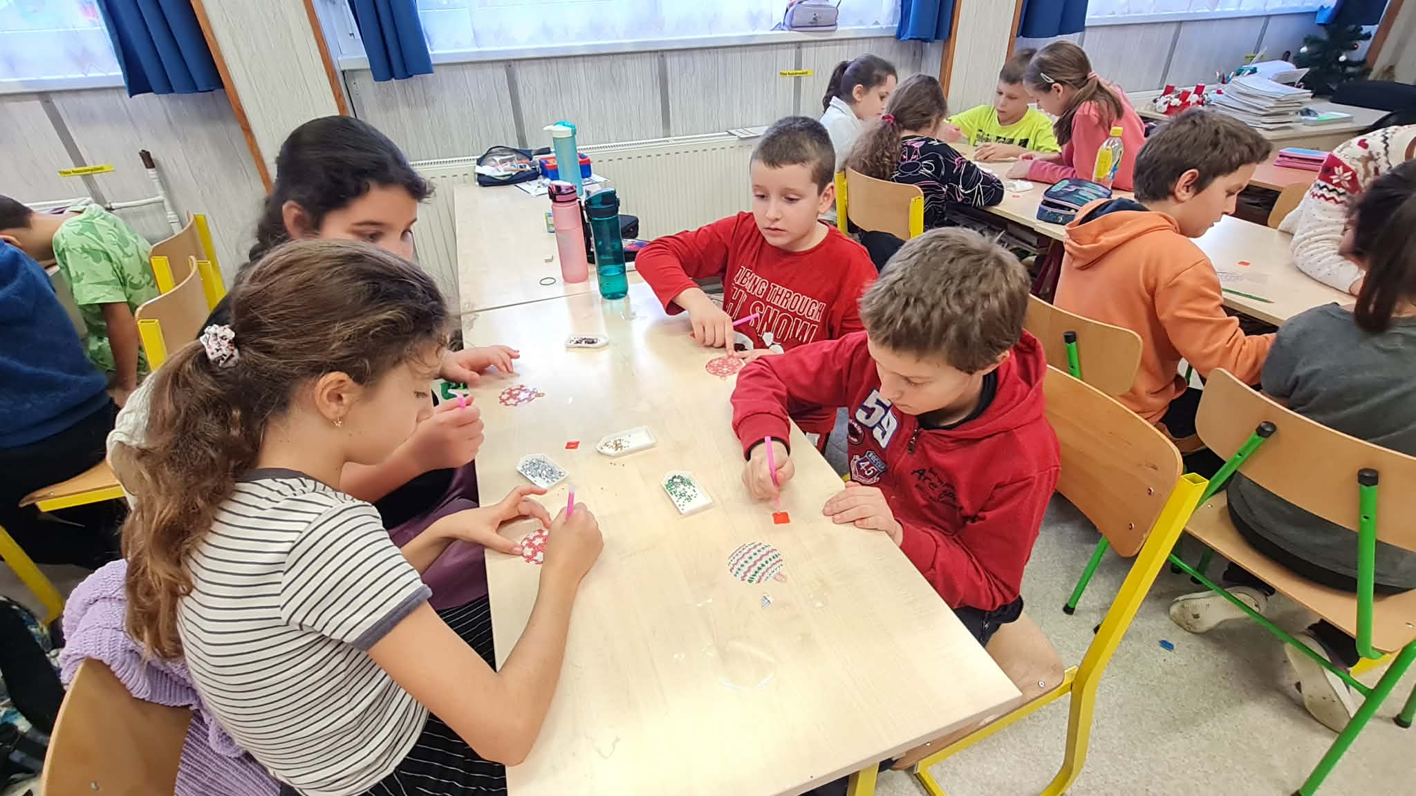 Osztályon belül még gondoltunk szeretteinkre is, akiket olyannal szeretnénk megajándékozni, amire nem számítanak. Karácsonyfa díszeket készítettünk ajándékba, aprólékos, időigényes, odafigyelést igénylő munkával.