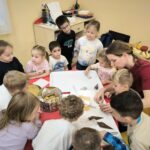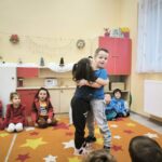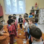A december az állandó készülődés, várakozás hava. Ebben a felfokozott hangulatban igenis le kell kicsit lassulnunk, meg kell állunk, egymás felé kell forulnunk. Ezt próbáltuk ersősíteni a gyerekekben is. Julia Donaldson: A legcsinosabb óriás című meséje remek alapot adott, hogy felismerjük a jó cselekedetek varázsát. A mesehallgatás után beszélgettünk kicsit a meséről, és arról, hogy ki milyen jócselekedetet tett mással, esetleg mit tettek vele. Visszatérő motívum volt a szülők segítése, szomorú pajtásuk megvigasztalása vagy egyszerűen csak egy ölelés. Az ötletekből néhányat el is játszottunk, amit a gyerekek külön élveztek. A hónapban többször játszottuk a Fuss és ölelj játékot, igazi kedvenc lett, illetve a Szeretetfolyosón is többször átmentek a gyerekek. A hónapban tartottunk egy barkácsdélutánt is, melyen a gyerekek szüleikkel együtt alkothattak karácsonyfa díszt. Az alkalom nagyon jó hangulatban telt, a végén pedig megvendégeltük a szülőket mézeskaláccsal, amit korábban a gyerekek készítettek, díszítettek. A gyerekek önállóan is készítettek karácsonyfa díszt, ez volt az ő meglepetésük a szüleik számára.