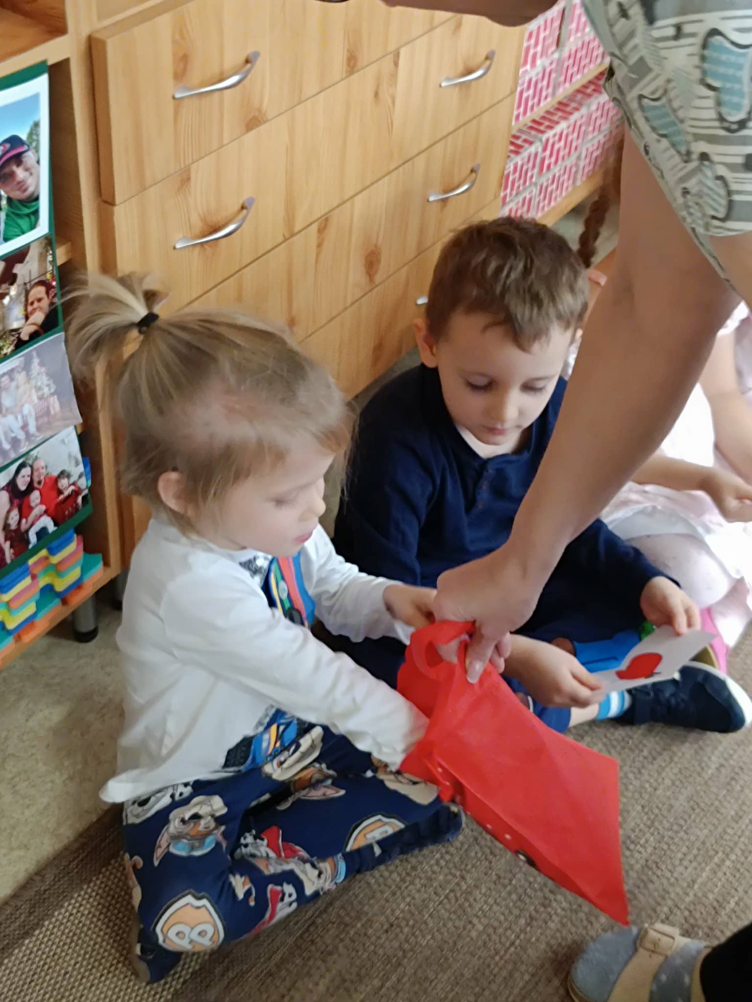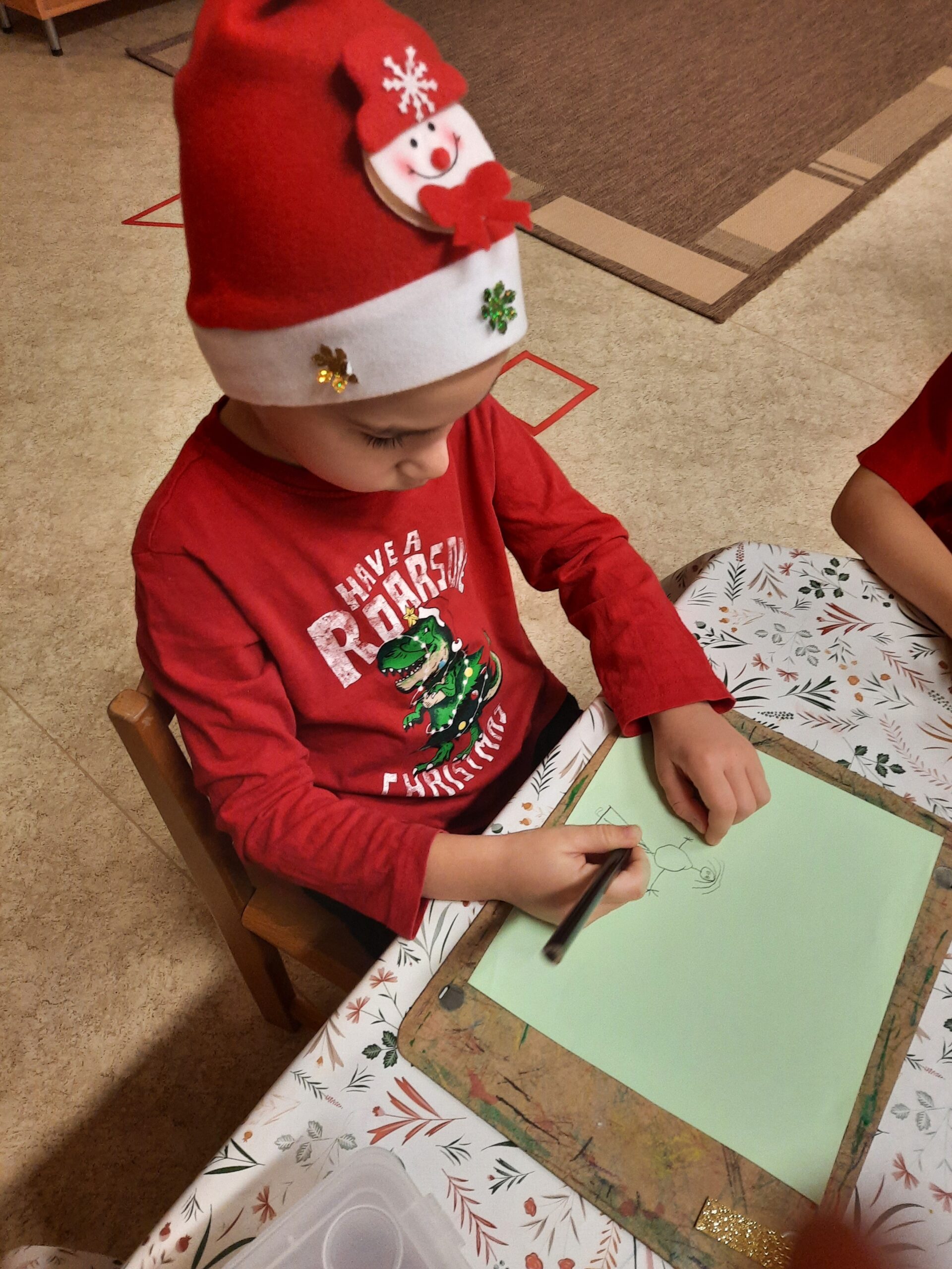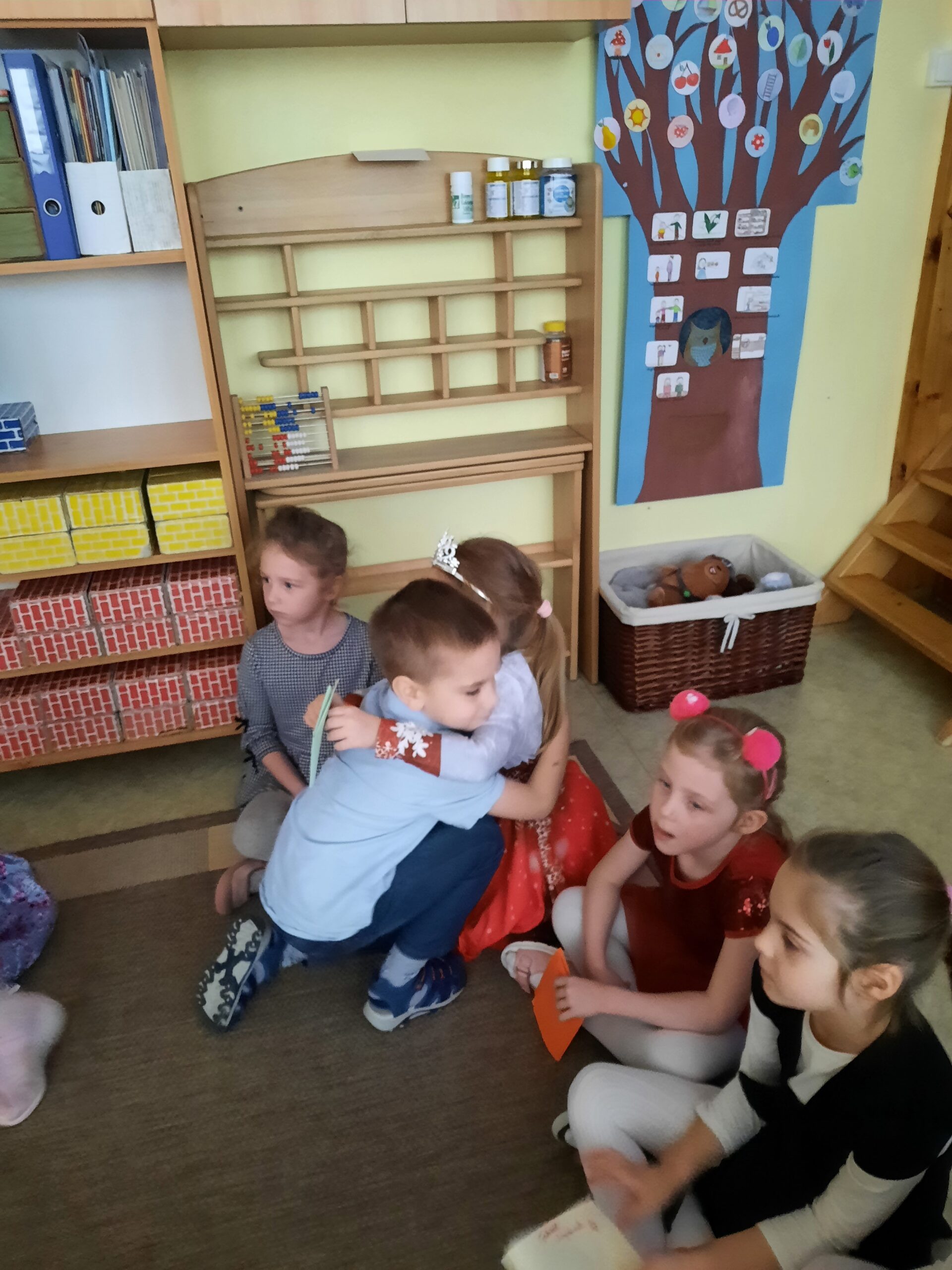 December elején izgatottan húzták ki a gyerekek egymás jelét egy zsákból. Ezt követően elkezdődött a szorgalmas és titkos munka, minden gyermek a kihúzott társának készíthetett valami szépet. Sokféle dekorációs anyagot kínáltam fel a barkácsoláshoz, és a gyerekek keze nyomán szebbnél szebb ajándékok készültek. Karácsony napján megnyitottuk a Szeretet-postaládánkat, amelyben már ott várták a kis meglepetések, hogy kis gazdáik átadják őket.