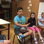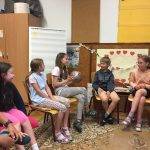 Az órát beszélgetéssel kezdtük. Mindenki választott egy kártyát. Hogyan érkeztél a mai órára? Hogy érzed most magad? Ez alapján lett kiválasztva a kártya. Mindenki elmondta a választása okát. Meghallgattuk a hónap meséjét, és mindenki választhatott, hogy melyik ajtón menne be. Majd egy labda segítségével eljátszottuk az Adok neked egy… játékot.