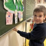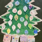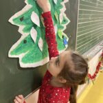 Az első decemberi boldogságórán beszélgettünk arról, hogy miért jó másokkal jót tenni, másoknak örömöt szerezni. Ezután csomagolópapírra egy nagy fenyőfát festettünk, amit a táblára tettünk fel. A fán olyan karácsonyfadíszek pompáztak, amelyeken a gyerekek egyéni jótettei voltak lerajzolva. A fa alá ajándékdobozok kerültek, amelyeken a fent említett jótékonysági tevékenységeket illusztráltuk. Munkálkodás közben Bagdi Bella dalokat hallgattunk, kedvencünket (Ha boldog vagy…) többször is.