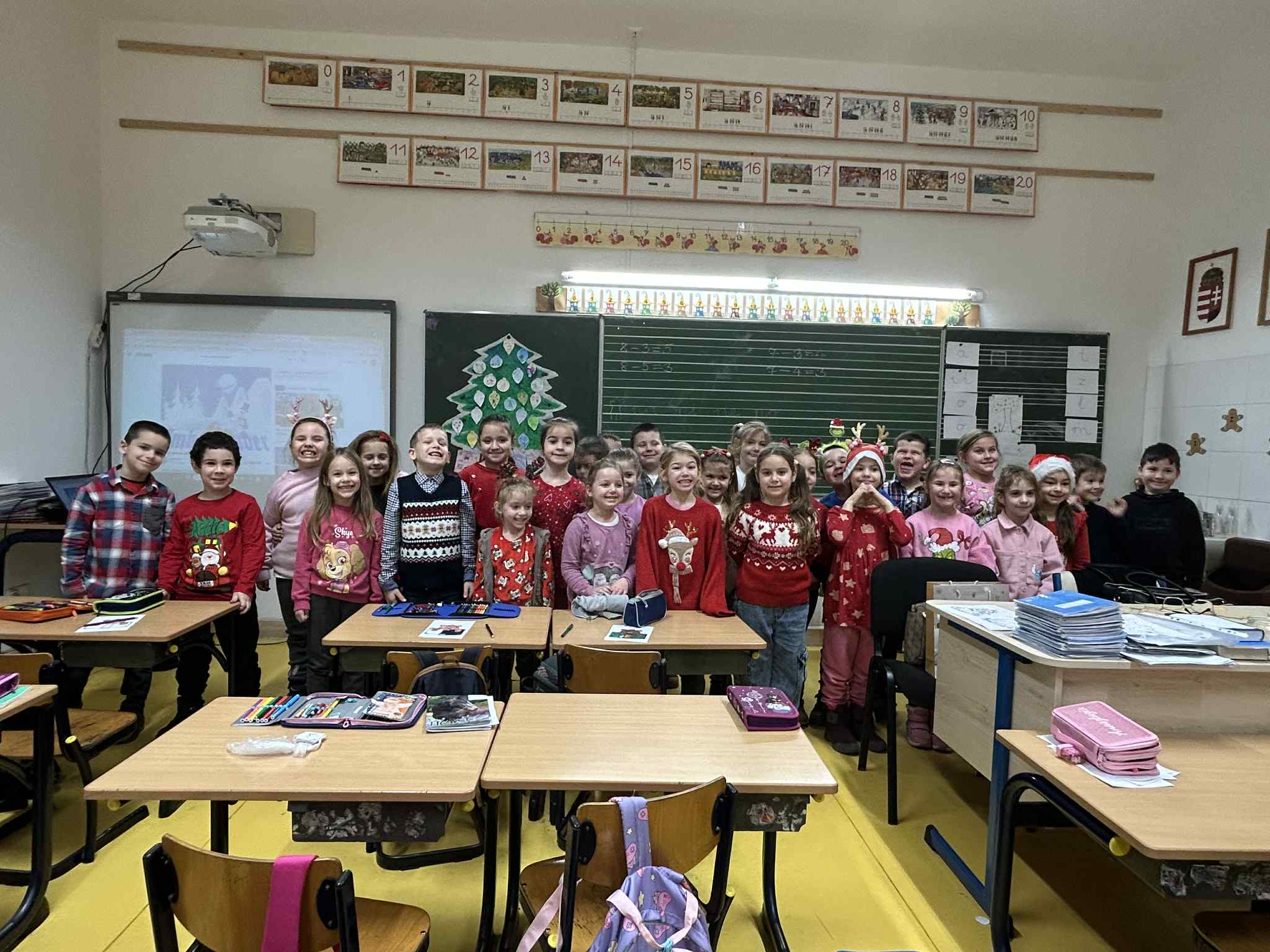 Második óránkon a Csúnya karácsonyi pulcsik világnapját ünnepeltük meg. A gyerekekkel színes, csillogós, kötött pulóverekben vidám téli dalokat énekeltünk és vicces karácsonyi történeteket meséltünk. A foglalkozást közös öleléssel zártuk.