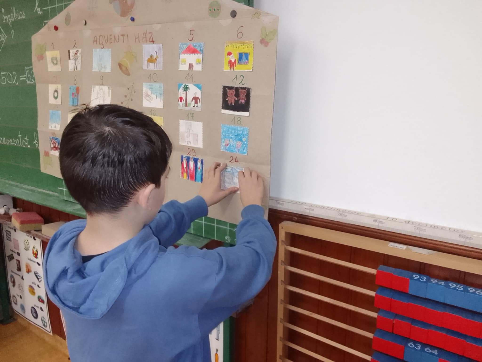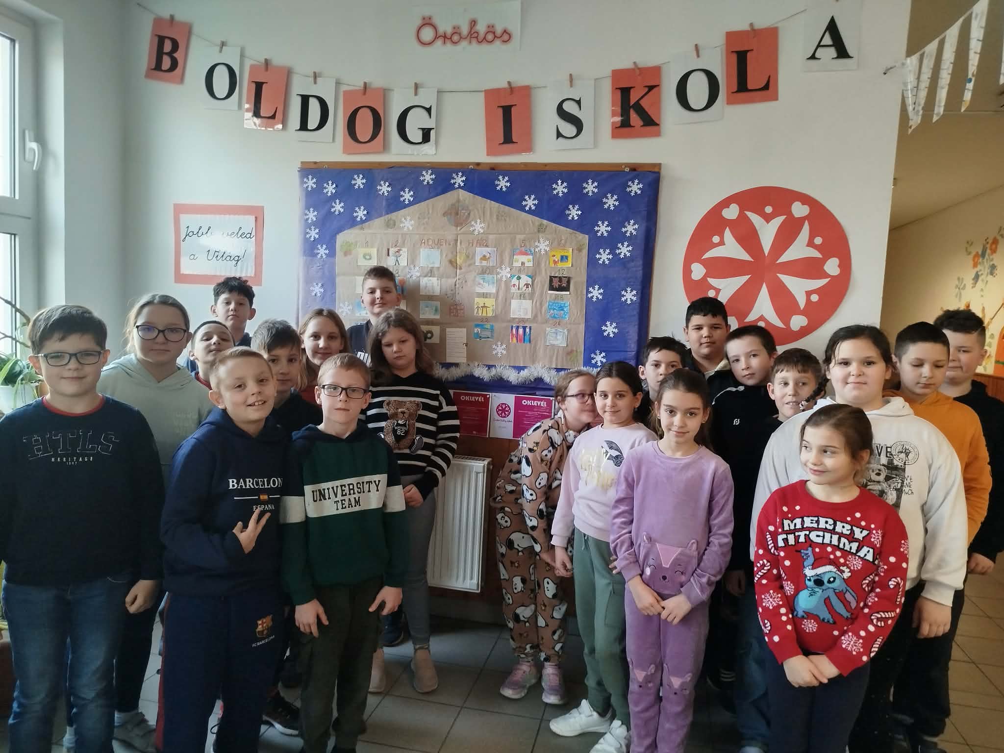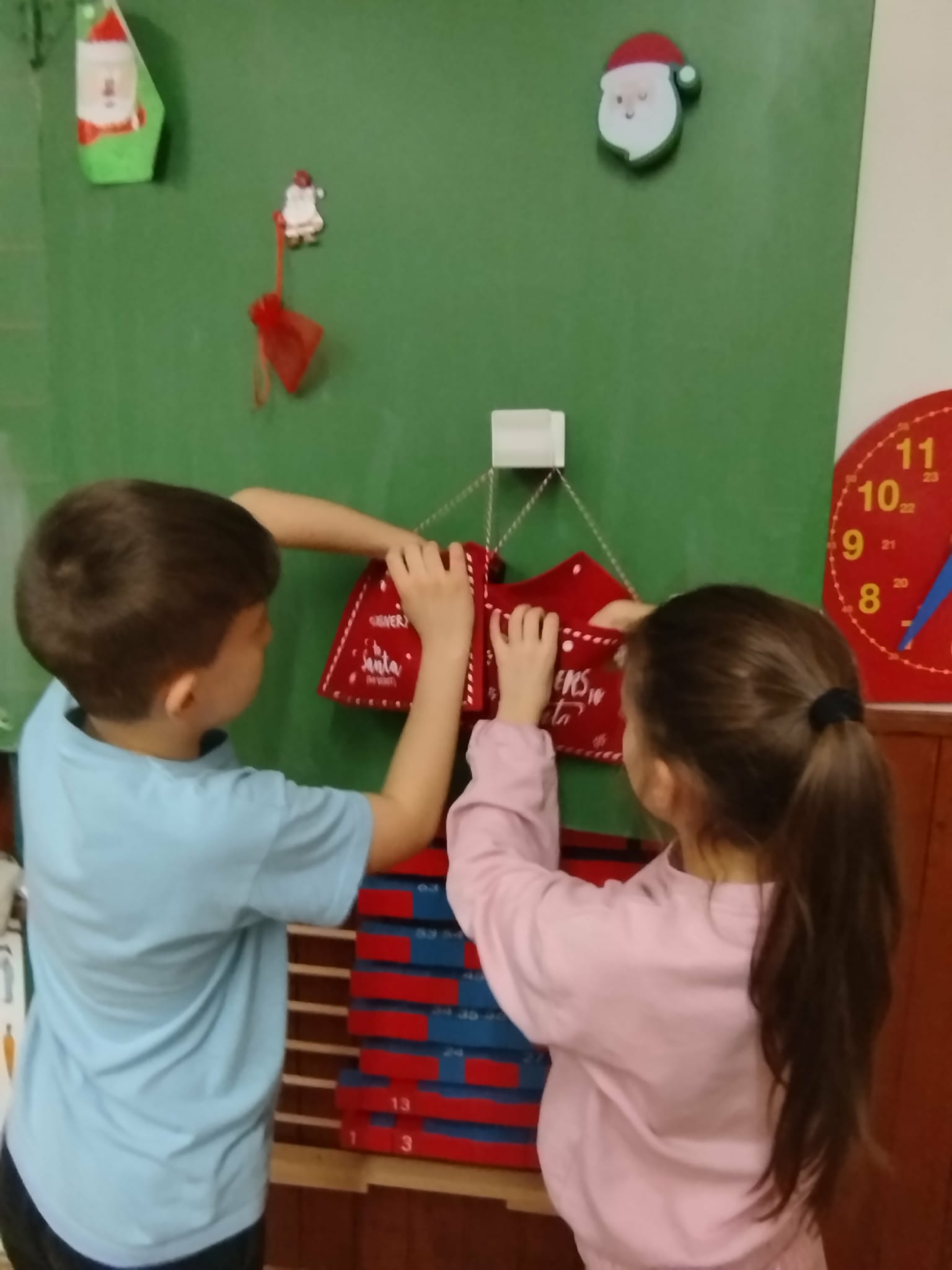 Az adventi időszakot a várakozás mellett, az adakozás és a jócselekedetek gyakorlása tette varázslatossá Mielőtt megérkezett a Mikulás egy ajándéktasakban tükröket küldött az osztály minden gyermekének. Üzenetében arra biztatta gyerekeket ,hogy mindig szeretettel tekintsenek önmagukra (tükörképükre). Beszélgetőkörben tisztáztuk, hogy önmagunk szeretete nem hiába való. Utat nyit mások szeretete, segítése felé! Levelet is irtunk a Mikulásnak, amelyben nem csak magunk számára kértünk ajándékokat, hanem az általunk szeretett embereknek is. A Csillagtallérok című mese is a jóságot sugározta felénk. Elhatároztuk, hogy egymás angyalkái leszünk ebben a hónapban. A következő alkalommal adventi jóságnaptárat készítettünk Nem csokival, hanem jócselekedetekkel. Egy mosoly, egy meleg tea, egy üzenet, hogy „gondolok rád”.