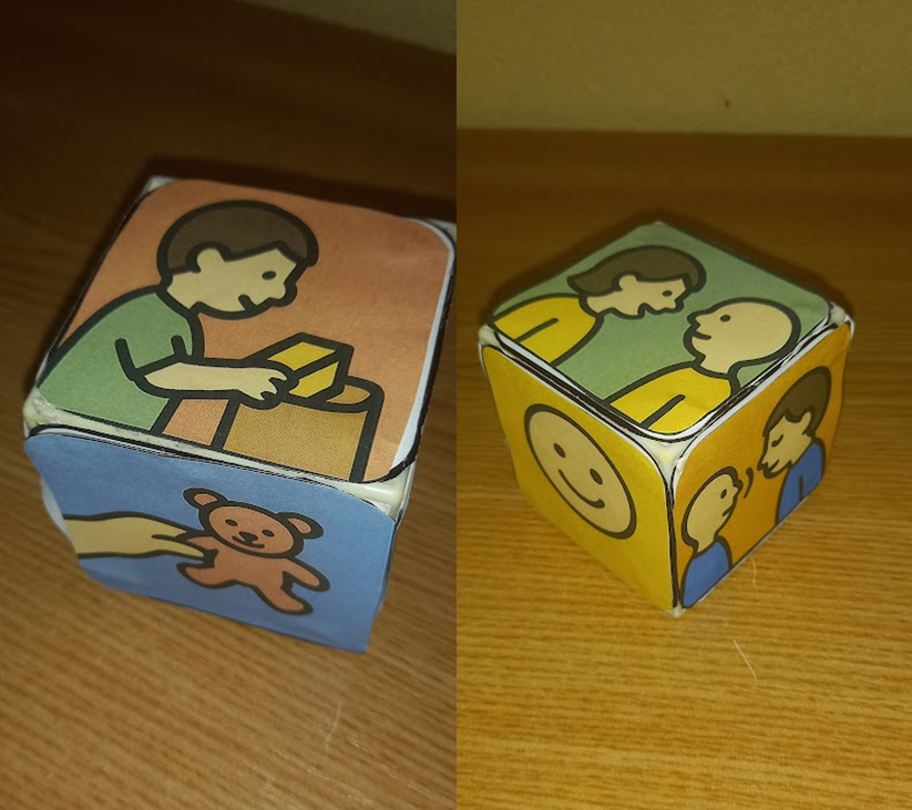 A foglalkozást a ráhangolódás jegyében egy plüss szívecske körbeadásával kezdtük, miközben az adventi várakozásról és a szeretetről beszélgettünk. Ezt követően került sor az „Adventi jócselekedet-játékra”, amely során a gyerekek egy olyan kockával dobtak, amelynek oldalain különböző jócselekedetek voltak ábrázolva (mosolygás, a játék megosztása, elpakolás, kedves beszéd, meghallgatás, sorban várás).