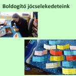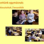 A téli szünet előtt tartottunk egy témát lezáró boldogságórát, ahol megbeszéltük a tapasztalatainkat. A gyerekek megfogalmazták, hogy a jótevőnek is örömet okozott az, hogy segíthetett valakinek, a jócselekedetek tehát valóban boldogító jócselekedetek voltak, és nem csak két gyereknek, hanem az egész közösségnek. December mottójának választottuk, hogy „Jobb adni, mint kapni!”.