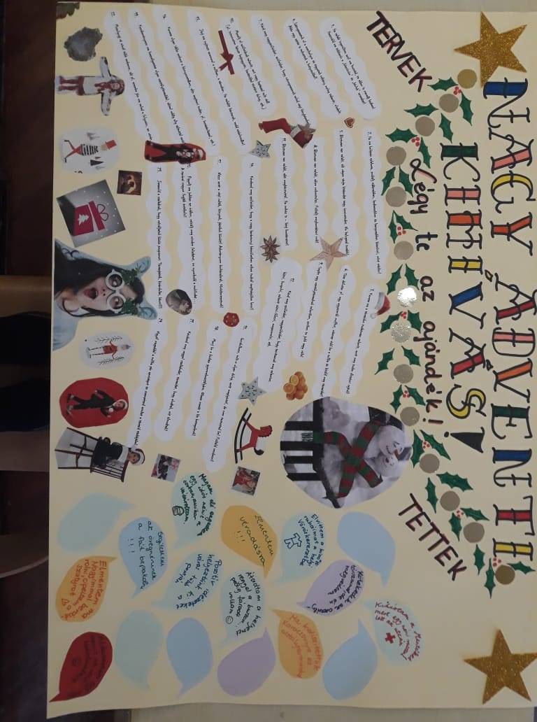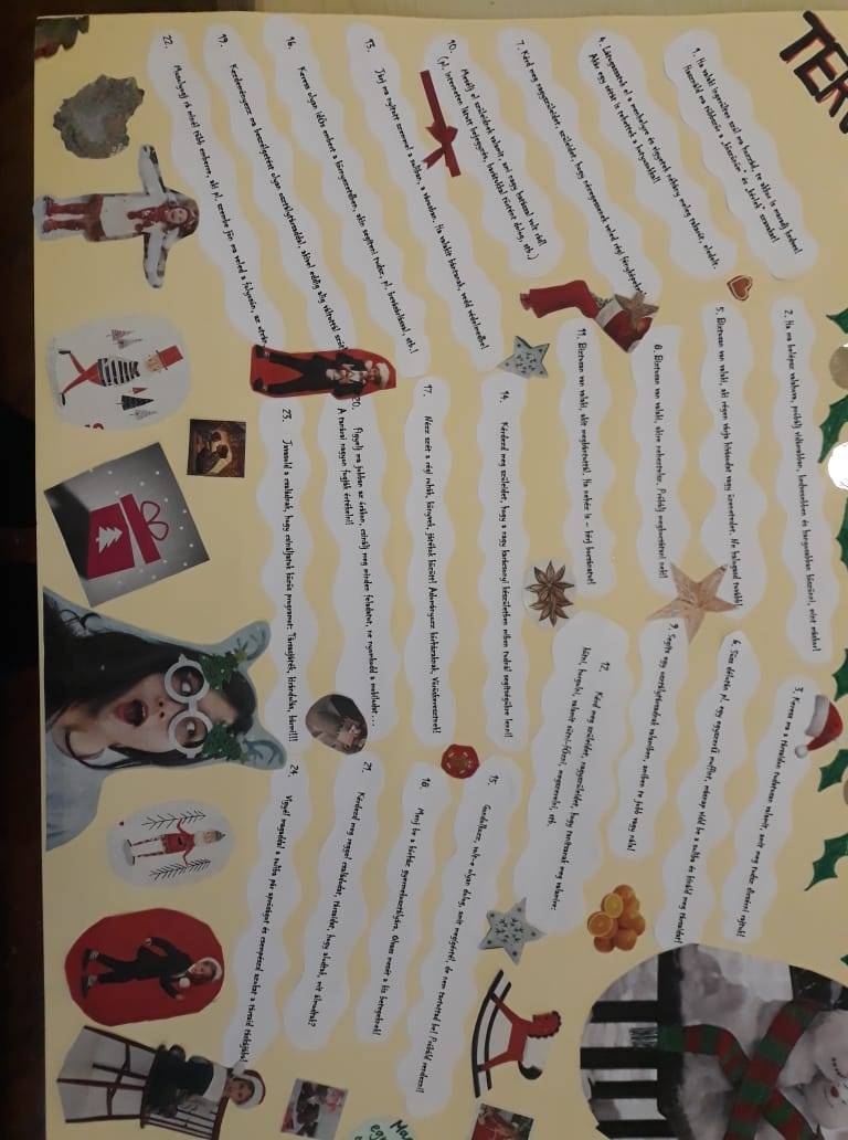 Ebben a hangulatban kézenfekvőnek mutatkozott az adventi kalendárium elkészítése, hiszen annyi lehetséges kisebb-nagyobb örömszerzési forrás és lehetőség jutott eszünkbe, hogy a végén szinte már válogatni sem tudtunk közülük.
