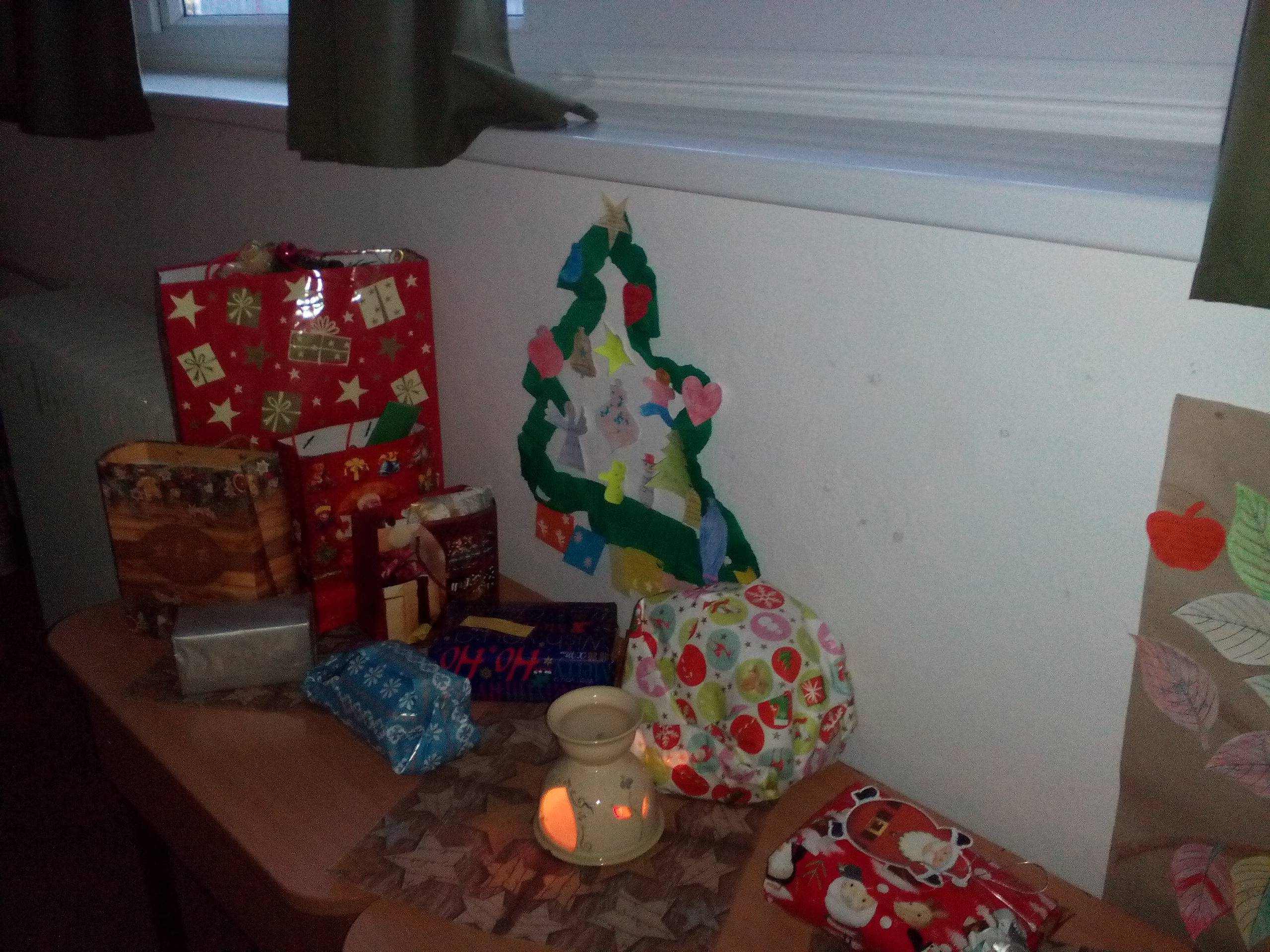 Az ajándékok az osztály karácsonyi ünnepségén került, mindenki húzott egy nevet az osztálytársai közül, s azt egy jelképes ajándékkal megajándékozta, De előtte egy-két jó gondolatot mondott társáról, hogy felismerje magát.