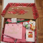 Ezután mi magunk is összeállítottunk egy cipősdobozt: először kitaláltuk, milyen nemű és milyen korú gyereket szeretnénk meglepni (mi egy 15-17 éves lánynak készítettünk ajándékot, azzal az indokkal, hogy biztosan mindenki inkább a kisebb gyerekekre gondol), majd összeállítottuk a listát, mindenki vállalt egy-egy ajándékot (ez lehetett pl. iskolaszer, kozmetikai cikk, rajzeszköz, ruházati kiegészítő). Végül a cipősdobozt megtöltöttük az ajándékokkal, gondosan becsomagoltuk és kidíszítettük, készítettünk egy üdvözlőkártyát, amit mindannyian aláírtunk, majd együtt leadtuk a gyűjtőponton.