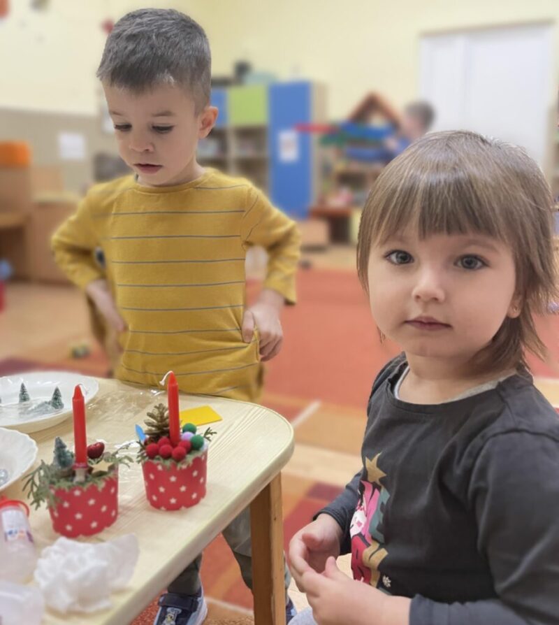 A decemberi hónap az ADVENT ideje, amikor szivünknek meg kell telnie csupa jó cselekedettel, szeretettel, boldogsággal .Boldogok akkor is lehetünk, ha mi magunk is ajándékozunk: ölelést, mosolyt és apró ajándékokat. A reggeli beszélgetések során ezeket a gondolatokat igyekeztem elmélyiteni a gyerekek gondolataiba és ők ügyesen alkalmazták is a csoportszobába és otthon is apró cselekedetekkel, nagyon figyeltek arra, hogy segitség egymást és otthon a szüleiket is.amit aztán örömmel meséltek el társaikank.