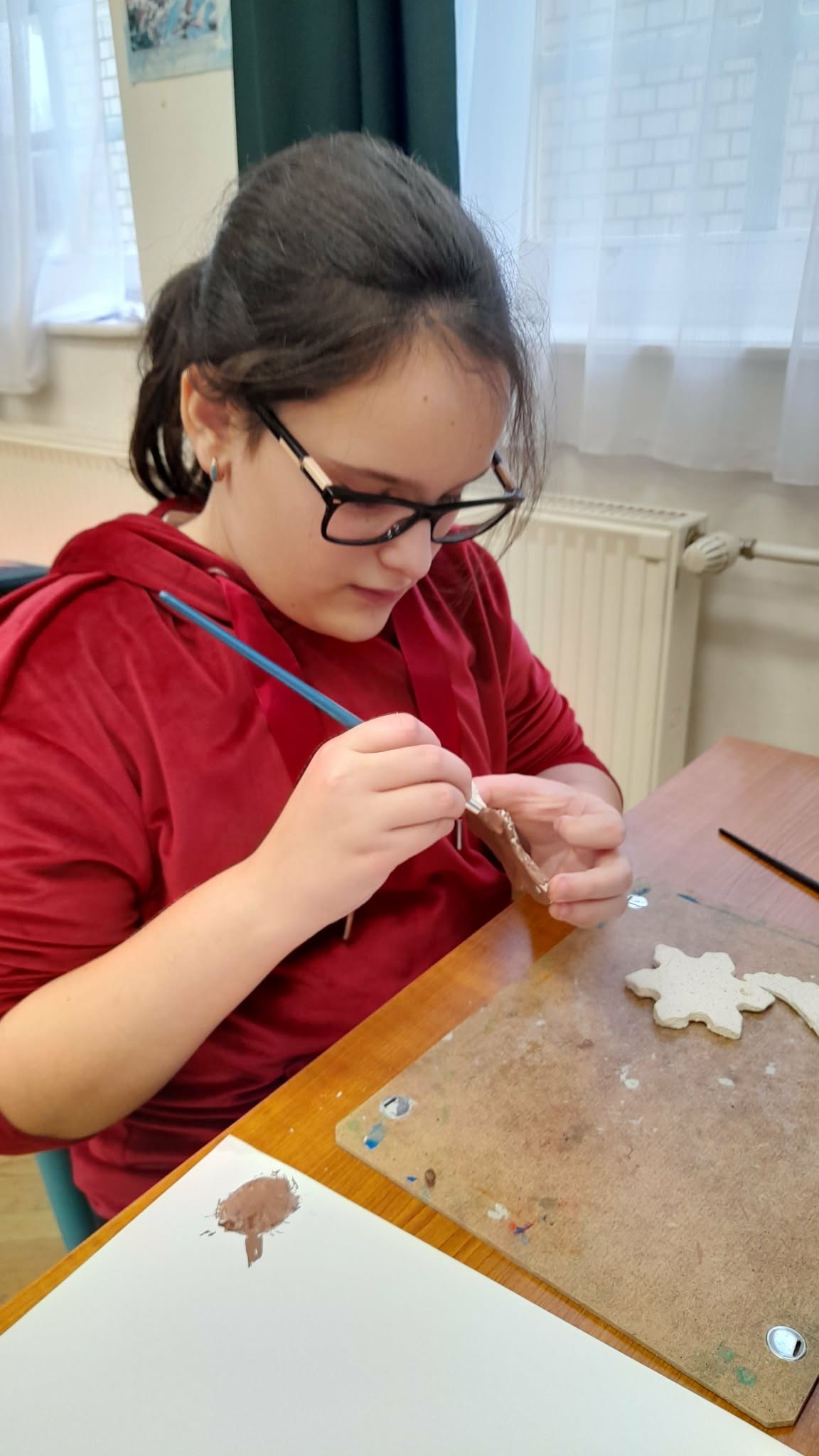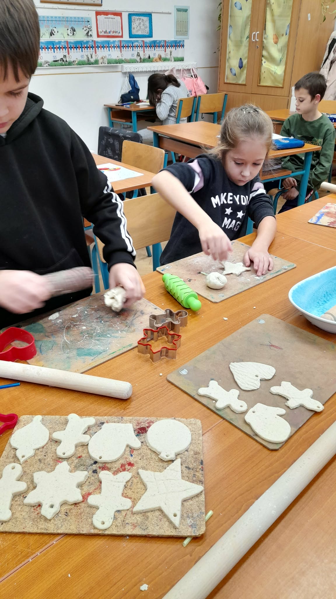 A 4. osztályos gyerekekkel a boldogságórán a jó cselekedetekről beszélgettünk. Így karácsony közeledtén talán jobban odafigyelünk egymásra. Jó cselekedetként, sóliszt gyurmából készítettünk karácsonyfa díszeket, amelyeket elajandékozunk, így egy kis örömöt adva általuk. A szépen kifestett díszekkel kívánunk áldott ünnepeket szeretteinknek.