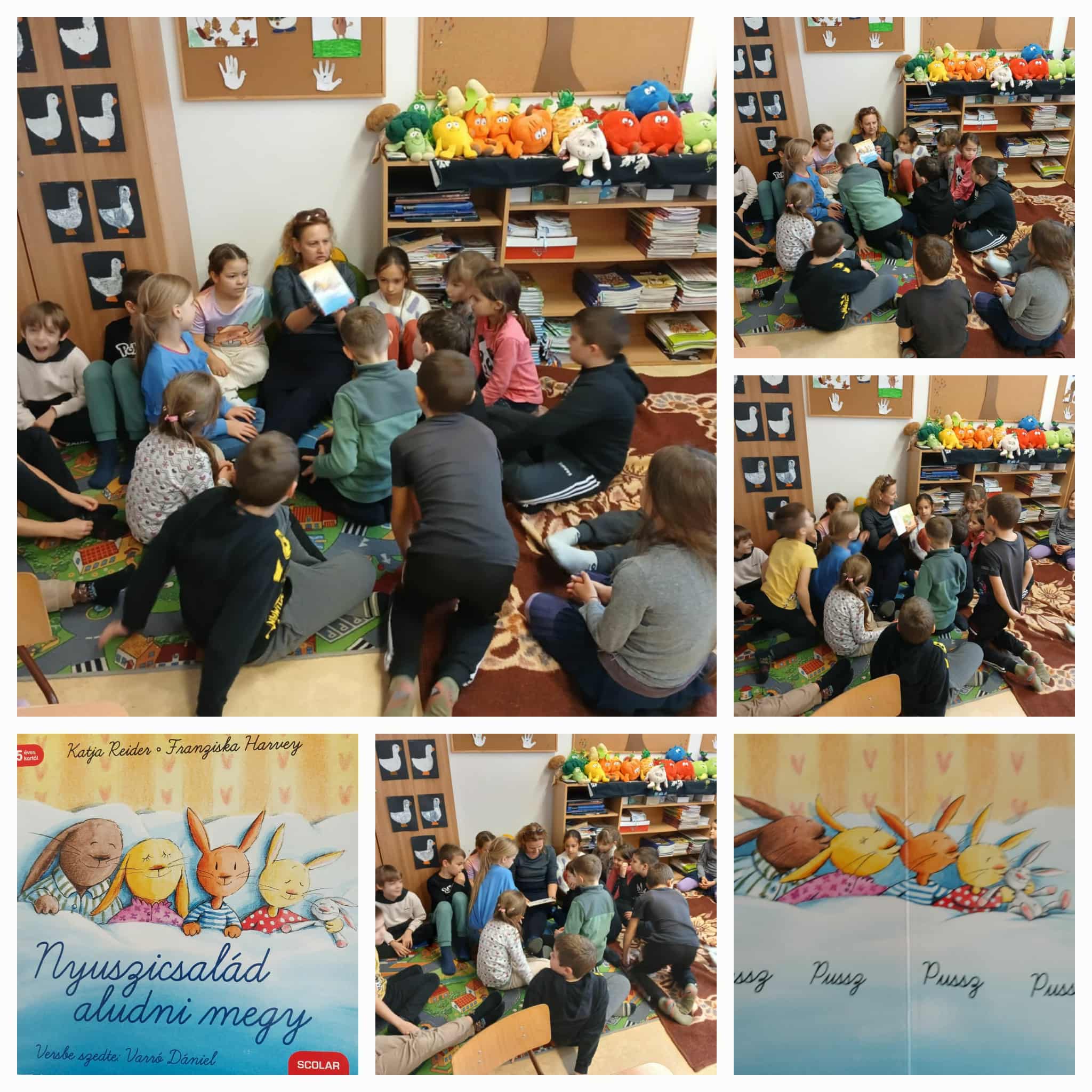 A második foglalkozás elején újra meghallgattuk a hónap dalát, táncoltak is rá. Majd következett a mesehallgatás. A Nyuszicsalád aludni megy című mesét olvastam fel nekik. Megbeszéltük, hogy a történet hogyan kapcsolódik a hónap témájához. Mivel szerettek volna még táncolni, újra meghallgattuk a hónap dalát, befejezték még a színezést is. Ezt a foglalkozást is meditációval zártuk.