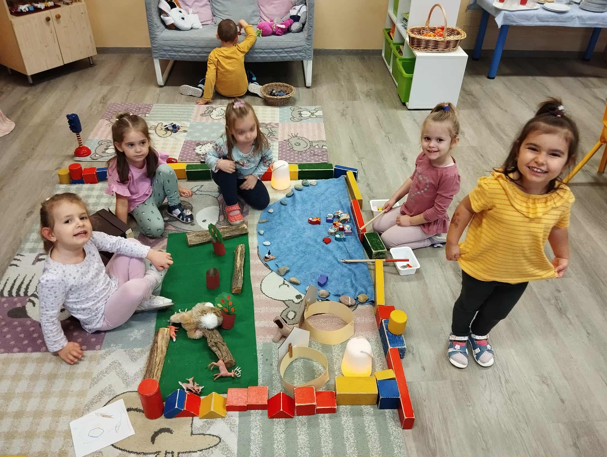 A libás játékok, terepasztal, konstruáló játék, a hangulatfokozó dalok és mondókák jó lehetőséget adtak a közös élményszerzésre, a boldog pillanatokra. A műsorra való mindennapos készülés és ismétlés, az együttmozgás, a másikra való odafigyelés, a társ kezét fogva körbejárás mind olyan egyszerű, de nagyon fontos élmény, ami a közösséggé válásunk alapja. A dalos és mozgásos játékok a páros „feladatmegoldásra” is alkalmat adtak. A kis libák együtt értelmezték és hajtották végre az utasításokat.