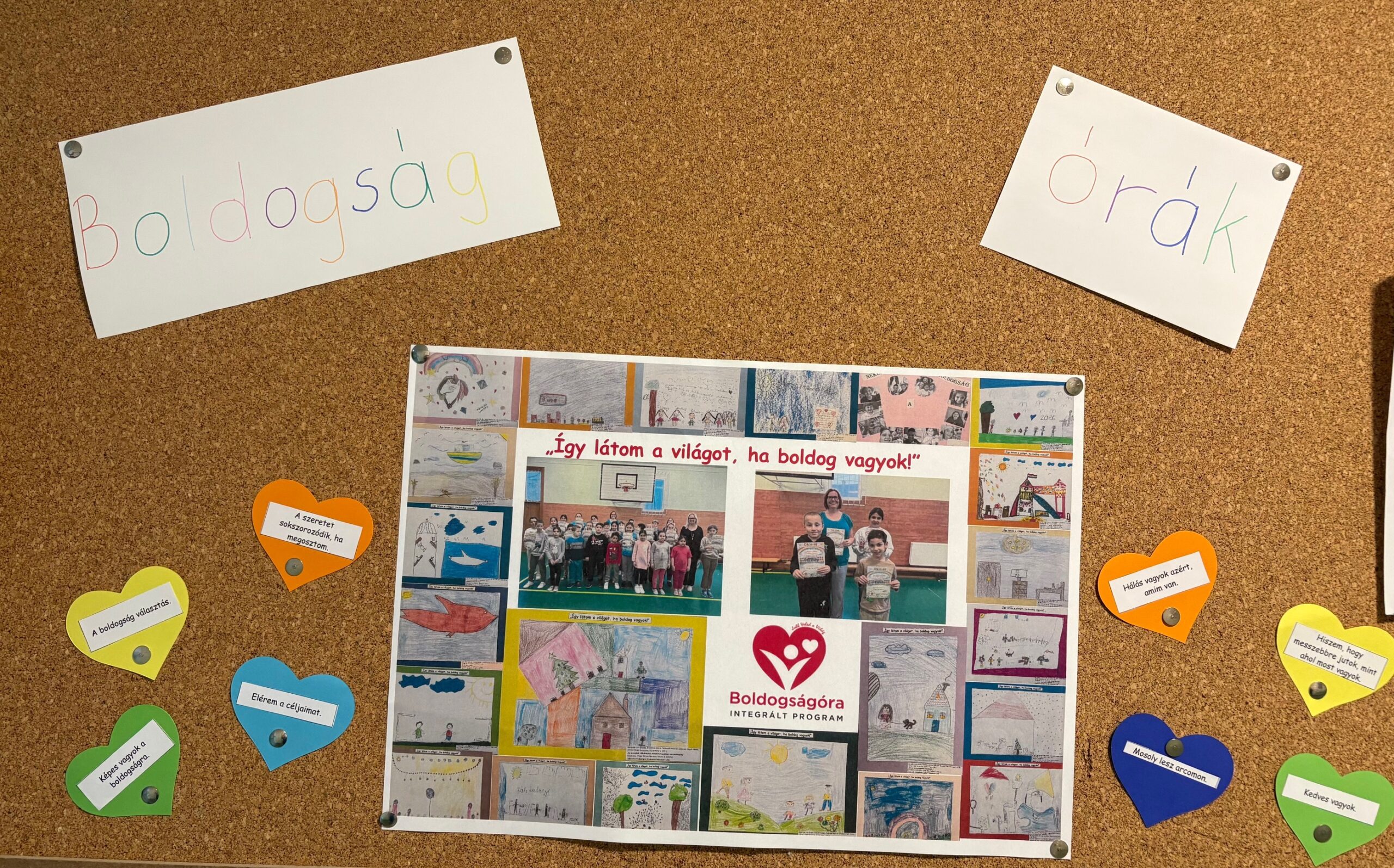 Pedagógustársaimnak pedig a kiosztott öröm szívecskék okoztak egy kis jó kedvet. Melyekből 1-2 darabot ki is raktunk a plakátunkra.