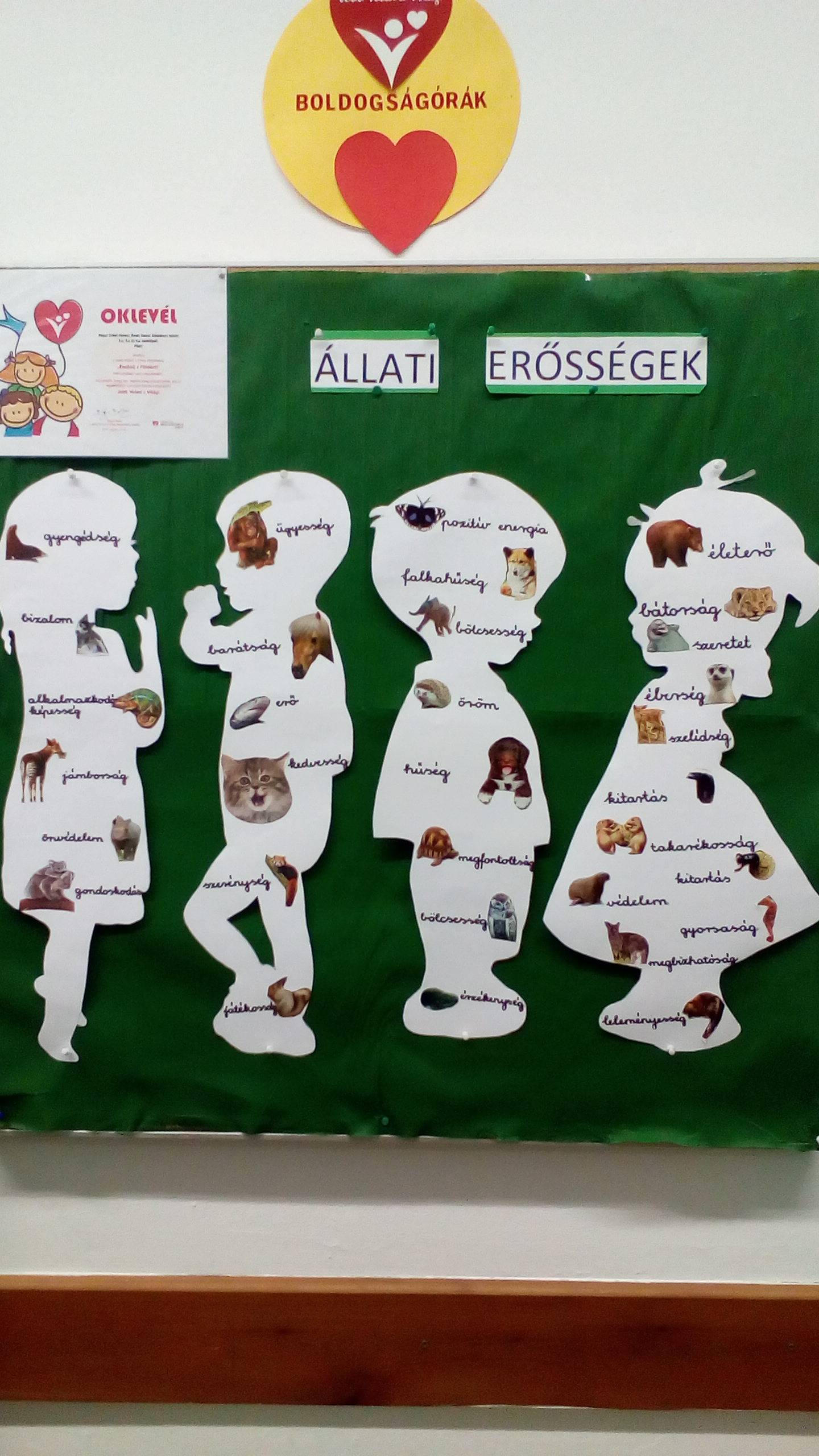 Érdekes volt ez a feladat, igazán lelkesen álltunk neki. Gyűjtöttünk sok állatképet, megbeszéltük, melyik mit szimbolizálhat. Végül ötletes jelképeket találtak ki ők is egy-egy állat kapcsán. Nagyon kreatívak voltak. Igen jól éreztük magunkat.