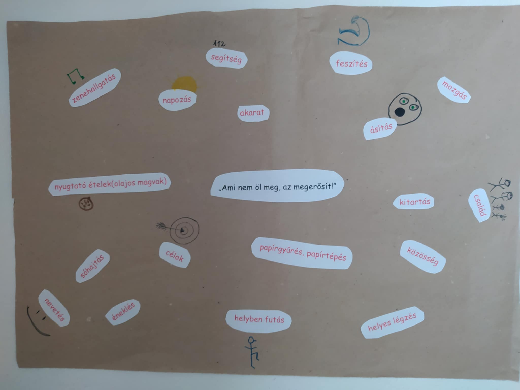 A havi tanóránkon komolyabb témával foglalkoztunk: a megküzdési stratégiákról beszélgettünk. Közösen gondolkodtunk azon, hogyan tudjuk kezelni a nehéz helyzeteket, problémákat és érzelmi kihívásokat. A felmerült megoldási lehetőségeket egy plakáton összegeztük, amely vizuális segítséget nyújt a későbbiekben is, és emlékeztet bennünket a hatékony problémamegoldás fontosságára.