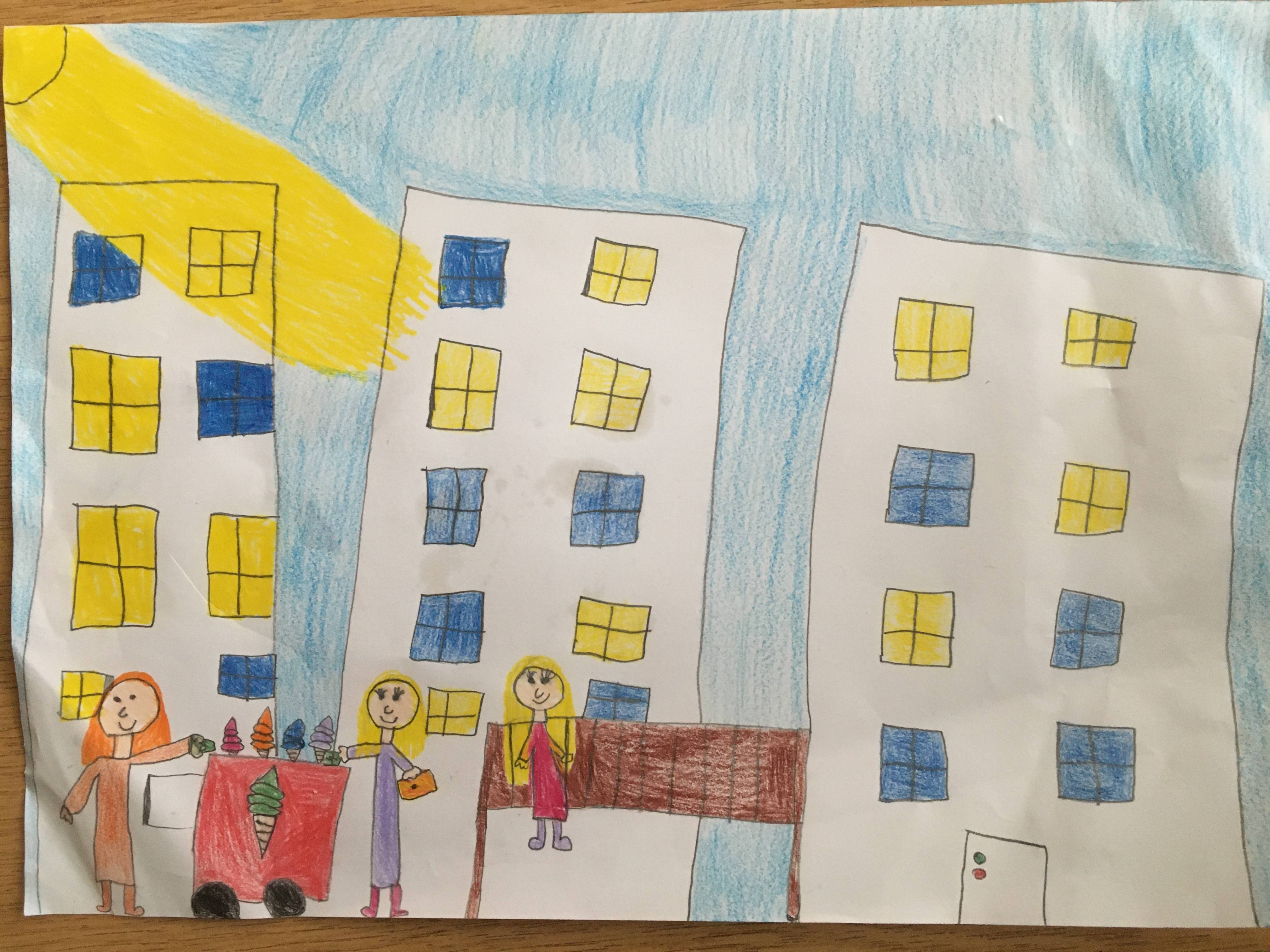 Közösen választottuk ki a képet az elkészültek közül. Ebben látták a gyerekek legjobban megjelenítve a hálát, amit a nyáron érezhettek. A kép alkotója nagyon hálás volt az édesanyjának, hogy vele töltötte a napot, még fagyiztak is.
