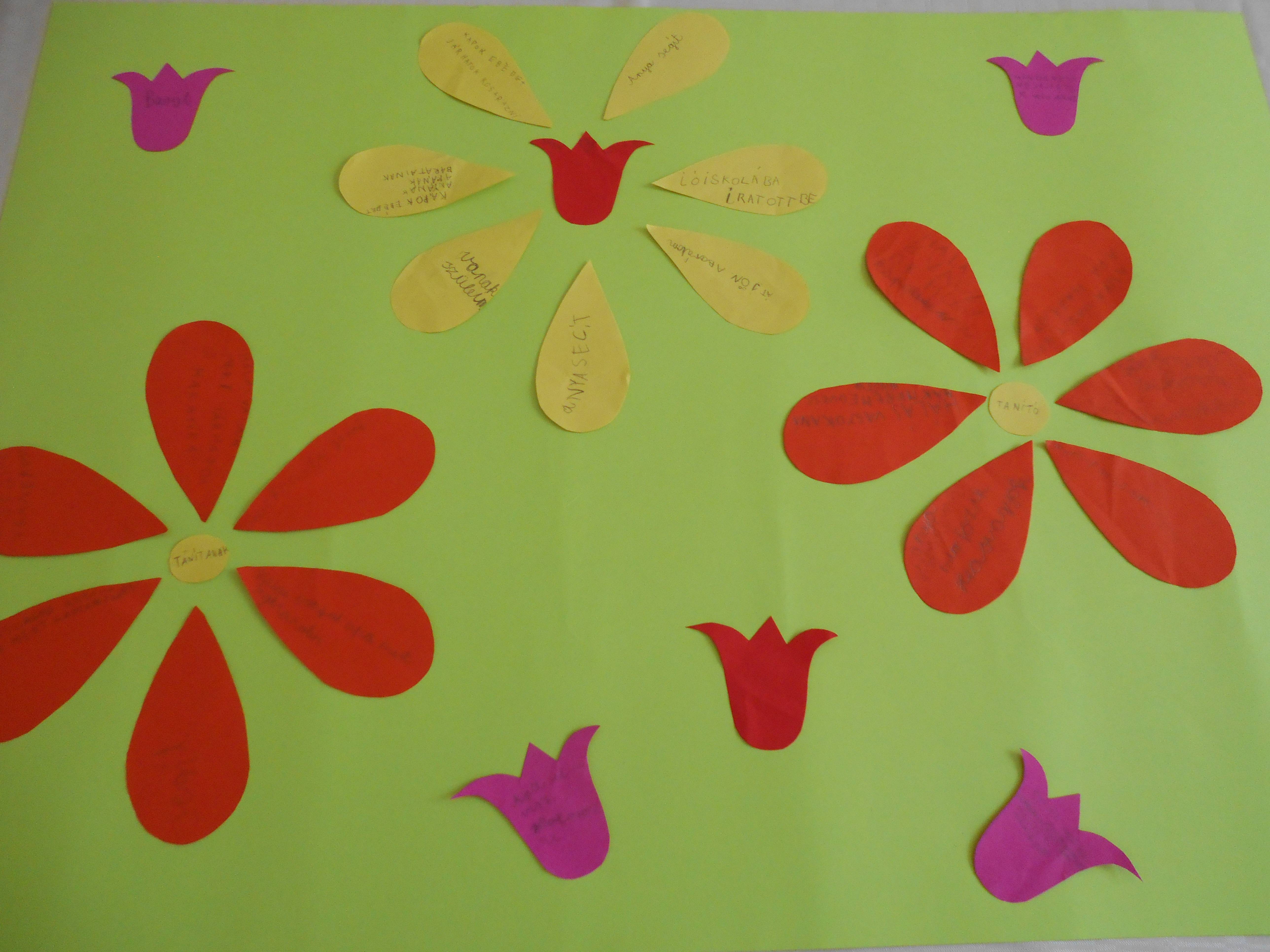 A gyerekek megfogalmazták a virágok szirmaira, levelekre írva, mit köszönhetnek szüleiknek, társaiknak.