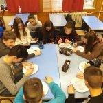 A foglalkozást azzal kezdtük, hogy megbeszéltük, mi a stressz és milyen történések tudnak minket kibillenteni lelki egyensúlyunkból. A szamár történetének felolvasásával folytattuk. Eljutottunk a megküzdés gondolatához. Ekkor megküzdéssel kapcsolatos cselekvéseket szortíroztunk kétfelé. Problémaközpontú és érzelemközpontú megküzdéseket. Mindenki elmondta, ő milyen megküzdési technikákat alkalmazott már. Majd egy-egy papírtányért osztottam ki, amely kis cikkekre volt felosztva. Mindegyik kis részbe egy-egy megküzdési technikát írtak be a gyerekek, amelyet ők szívesen használnak, vagy hasznosnak gondolnak. Hangosan felolvastuk a bejegyzett gondolatokat, majd eldöntöttük melyik kategóriába tartoznak a cselekvések. Probléma vagy érzelemközpontú technikáról van szó. Egy érdekes kérdést vetettem fel: Vajon mindegy mikor melyiket használjuk? Kis bizonytalanság után, közösen jutottunk arra, hogy amikor tudunk változtatni, probléma megoldó cselekvést érdemes használni. Ha azonban az egyén nem tehet semmit helyzete javítására, érzelemközpontú cselekvésre lehet szükség. Ilyen például, ha olyan életesemények történnek velünk, amelyen nem tudunk változtatni. Pl. haláleset, szülők válása stb. Végül, kis kártyákat adtam nekik, amelyen általam kitalált problémákat írtam le röviden. Először mindenki a saját kártyájára reagált, majd a többiek is kiegészítették a gondolatokat. A foglalkozást meditációval zártuk le.
