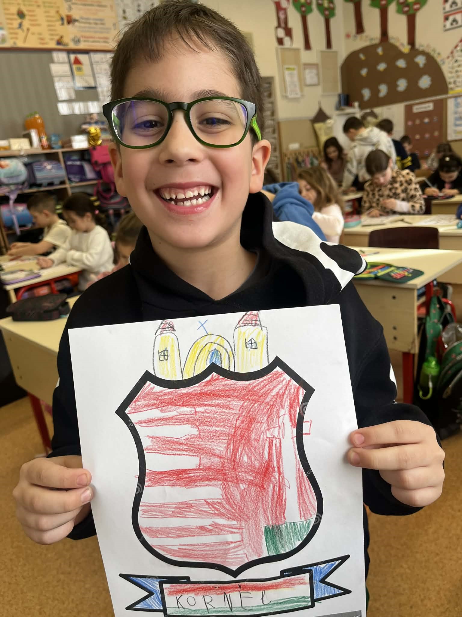 A következő foglalkozáson címerkészítésre került sor. A saját címer megalkotása során a tanulók szimbólumok segítségével jelenítették meg: