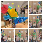 Eltáncoltuk a „Beültettem kis kertemet” kezdetű körjátékot. Meghallgatták a tanulók Cseppike történetét a Víz világnapja alkalmából. Hajtogatással készítettünk tulipán fejdíszt és krepp papír gyűrésével készítettük el közösen a vízcsepp „koronát! El is játszottuk a mesét és beszélgettünk róla: boldog az a tulipán, akiről gondoskodnak – kap esőt – , a szomorú tulipánt pedig Cseppike megvigasztalta, őt is megöntözte.