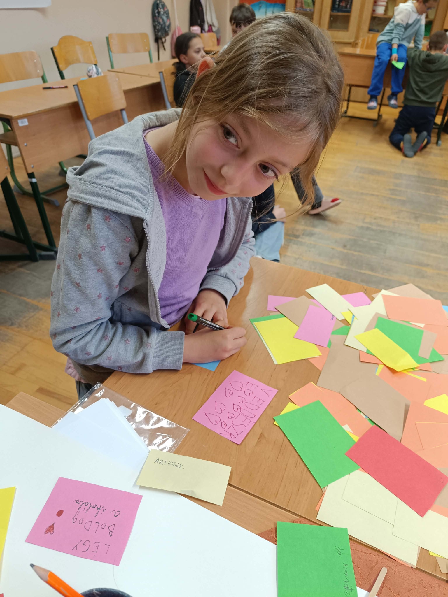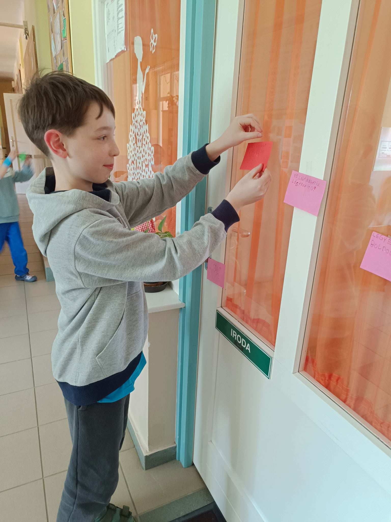 Kedves üzeneteket írtak a gyerekek színes lapokra, majd az iskolánk több pontjára helyezték ki. Kimondottan örült, aki észrevette, nem hagyták szó nélkül a kifüggesztett pozitív mondatokat még a felnőttek sem.