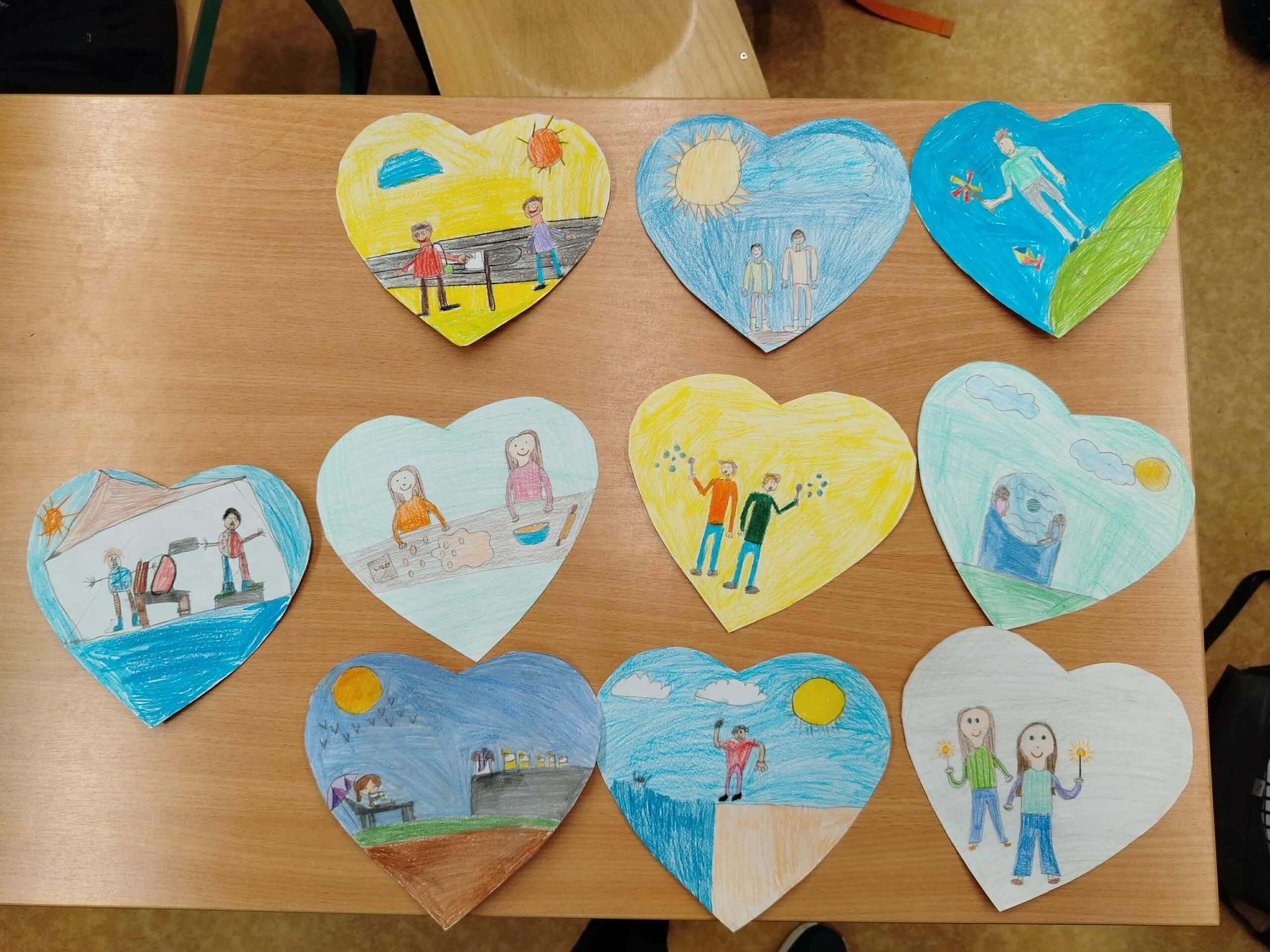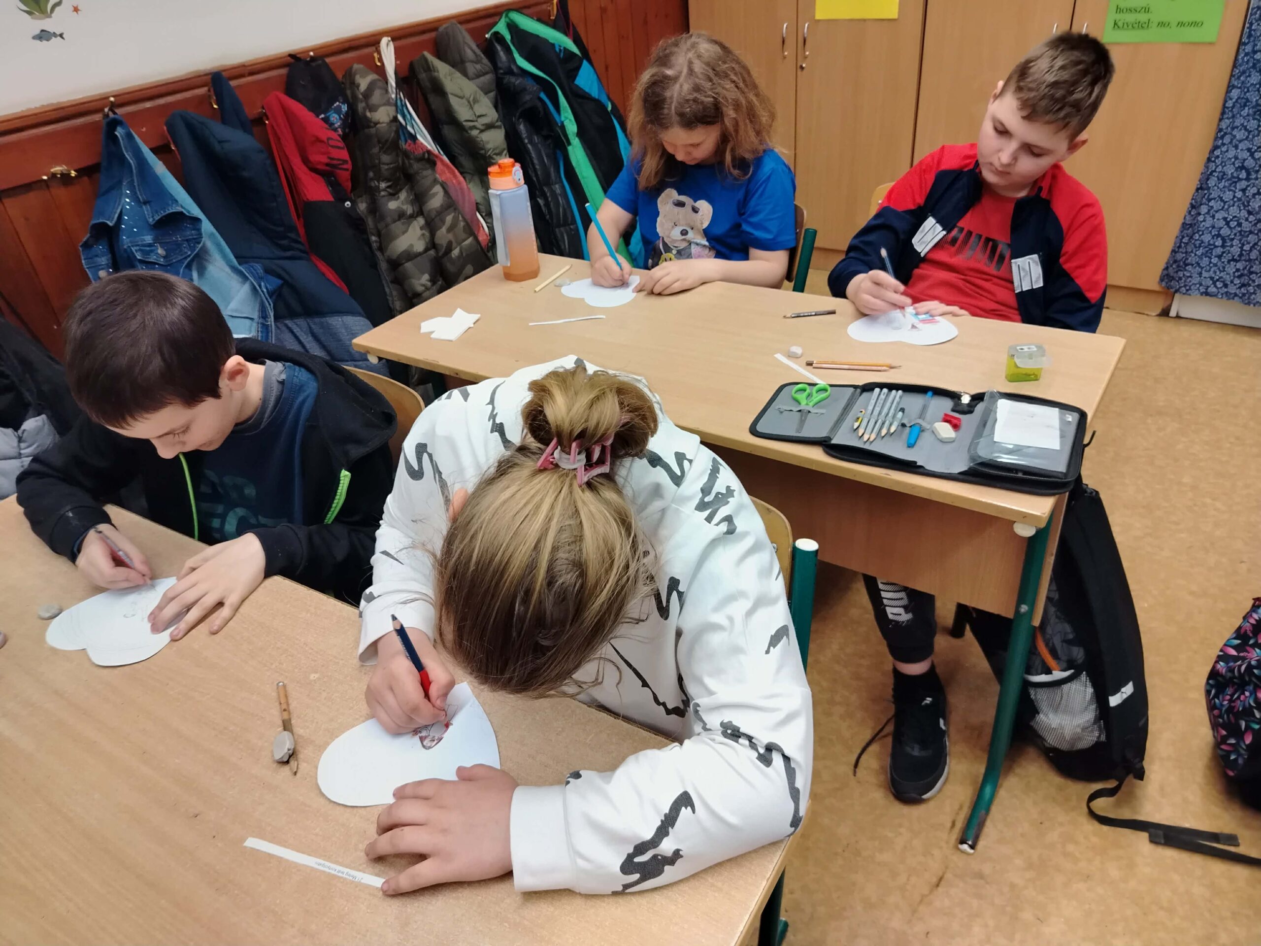 Így hangzottak a mondóka utolsó sorai. Beszélgetőkör segítségével felidéztük azokat a pillanatokat, amikor sikerült a napsugarat a szívünkben hordani. Ezek a pillanatok az apró örömök! Egymás figyelmébe ajánlottuk, hogy a mindennapjainkban ne felejtsük el észrevenni őket. Apró tárgyakat hoztam, amelyek apró örömöket idéztek. A következő órán meghallgattuk Bagdi Bella : Imádok élni című dalát A gyerekek kedves örömöket idéző , apró kacatokat hoztak el otthonról. Megosztották egymással, hogy milyen apró örömöket idéznek a tárgyak. Mivel nőnap közeledett ajándékot készítettünk A lányok a saját részükre rajzoltak egy virágot, a szirmaiba saját tulajdonságaikat írták. A fiúk kedves nő ismerőseiknek készítettek virágot.