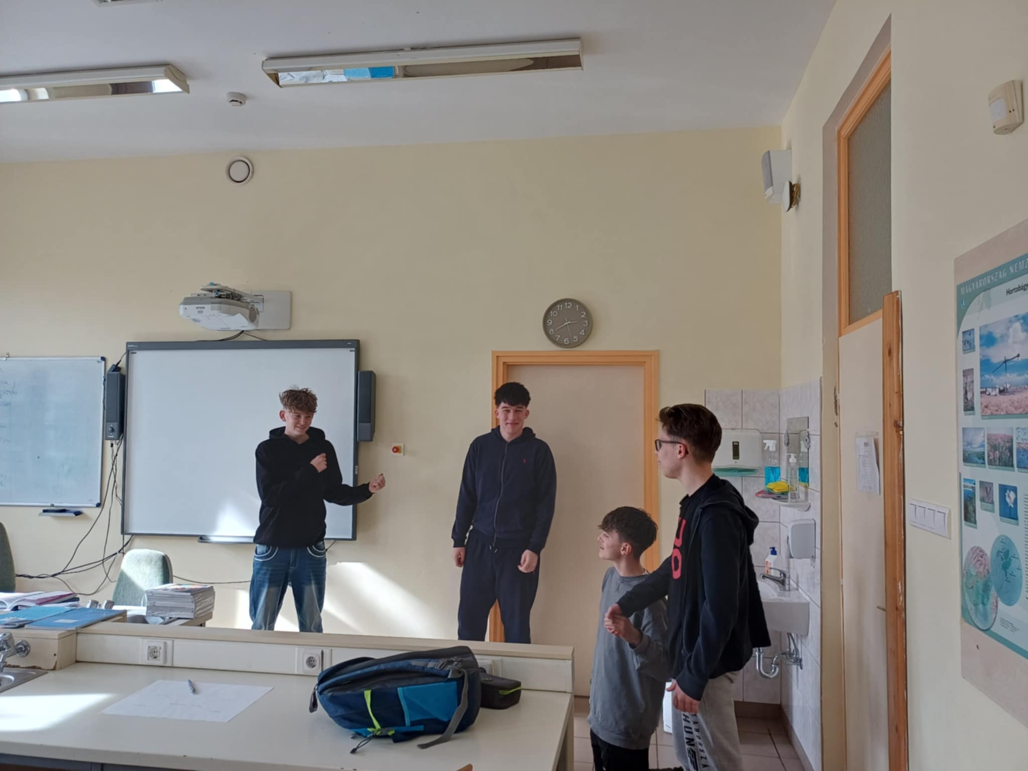 Ezután a szituációs játékot végeztük el. Csoportokban kellett dolgozniuk. Az egyik csoportnak el kellett játszania a teljes történetet. A másik csoport rappel, a harmadik verssel kellett bemutassa a kísérletet. Végül a negyedik csoport a némajátékot kapta. Mint minden esetben a drámajáték nagy sikert aratott, sokat nevettek már az előkészületek, majd az előadások során is.