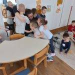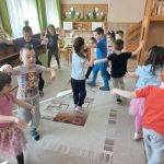 Az Apró örömök élvezete témát Bagdi Bella „Imádok élni…”című dalával indítottuk, melyet mozgással is kísértünk, majd relaxációs gyakorlatokkal folytattuk. A boldogságórát beszélgetőkörrel folytattuk, mindenki elmondhatta, hogy mi okoz számára örömet, mitől lesz szép a napja, mikor érezte ezt az érzést utoljára. Az egyik kislány azt mondta: „Amikor anya átölel.” Ezután elmeséltem a könyvből a témához tartozó mesét, melynek segítségével még inkább ráhangolódtak a témára. Az egyik kislányt megkértem, hogy feküdjön a szőnyegre, a társai építőkockákkal rakták körbe, majd megbeszéltük a testrészeket. Kis rávezetéssel eljutottunk a szemmel nem látható szervünkig, a szívig. A gyerekek azt mondták, hogy azért ez az egyik legfontosabb szervünk, mert ezzel érezzük az örömöt, a bánatot. A téma továbbadásaként mindenki átölelt egy társát, majd kimentünk a csoportból és akivel találkoztunk megöleltük.