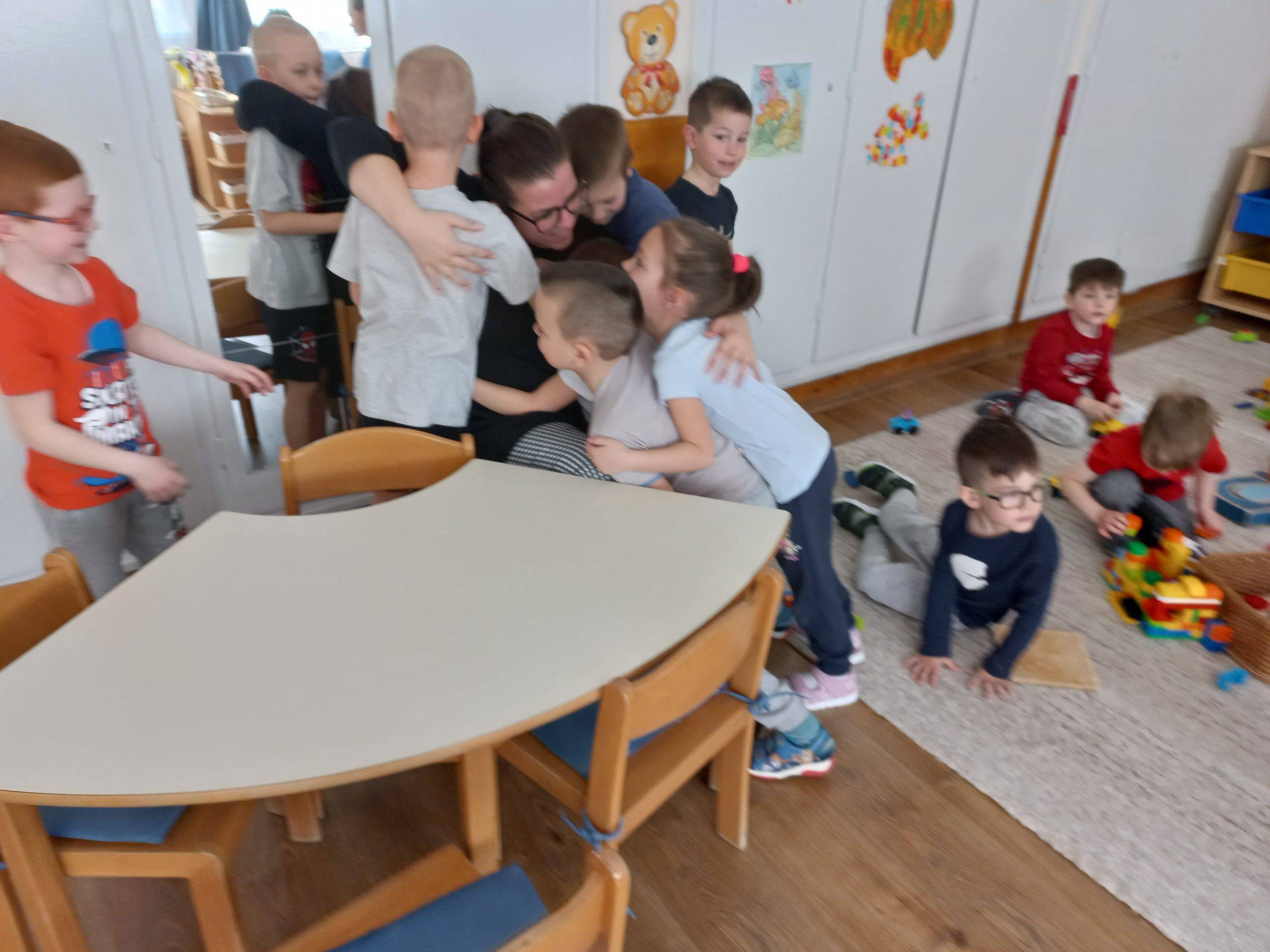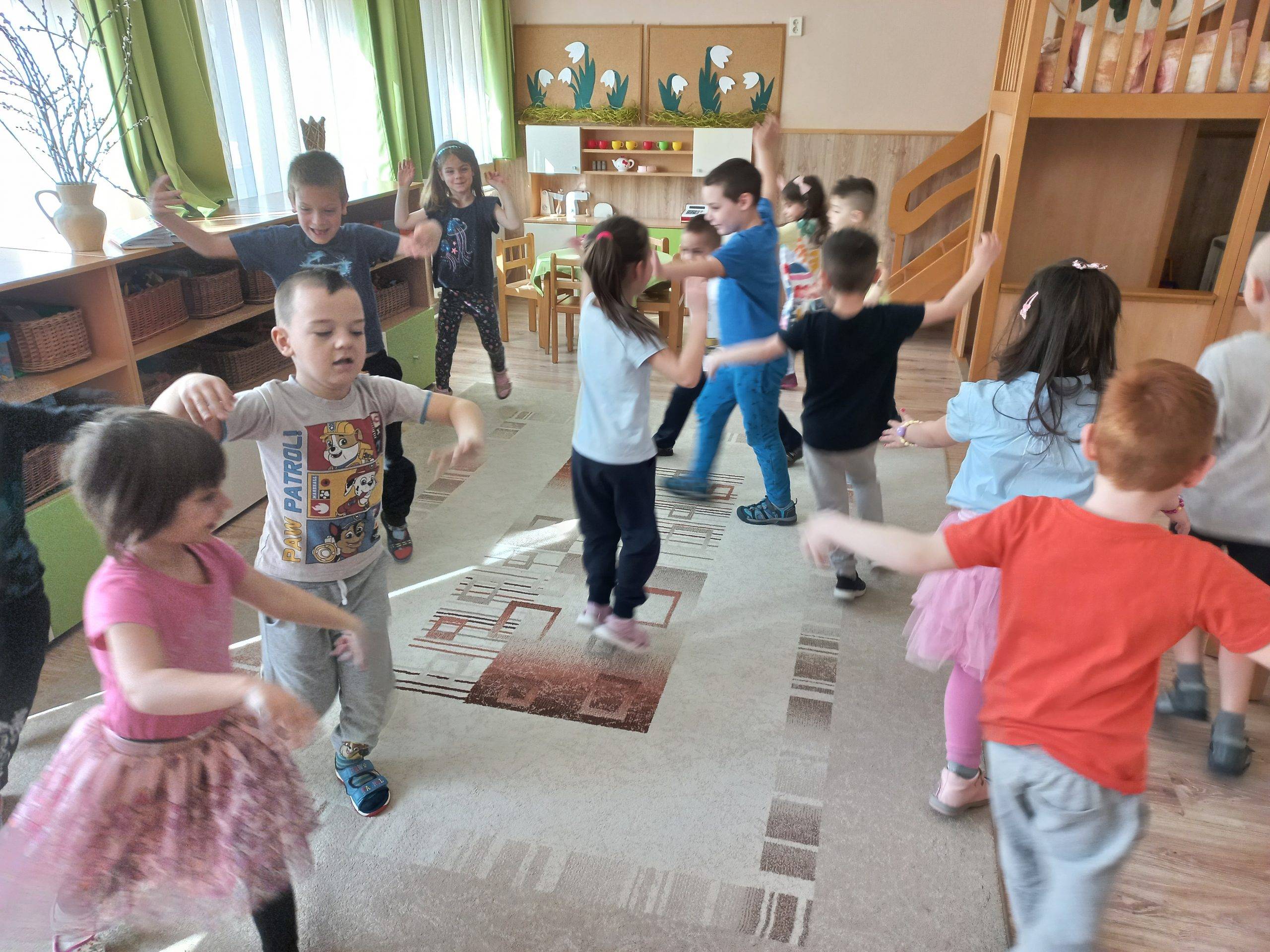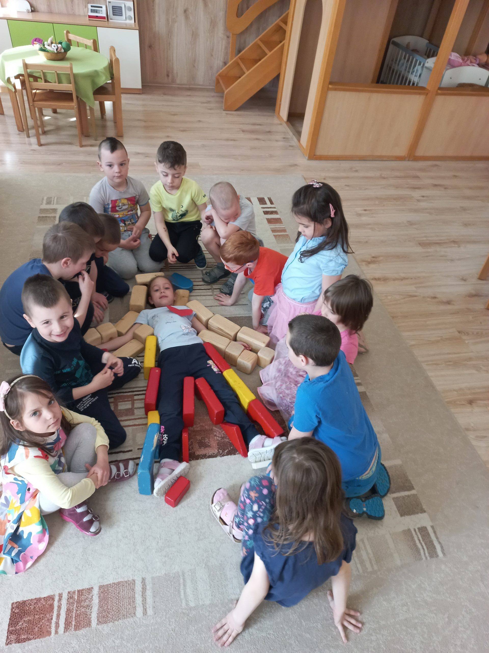 Az Apró örömök élvezete témát Bagdi Bella „Imádok élni…”című dalával indítottuk, melyet mozgással is kísértünk, majd relaxációs gyakorlatokkal folytattuk. A boldogságórát beszélgetőkörrel folytattuk, mindenki elmondhatta, hogy mi okoz számára örömet, mitől lesz szép a napja, mikor érezte ezt az érzést utoljára. Az egyik kislány azt mondta: „Amikor anya átölel.” Ezután elmeséltem a könyvből a témához tartozó mesét, melynek segítségével még inkább ráhangolódtak a témára. Az egyik kislányt megkértem, hogy feküdjön a szőnyegre, a társai építőkockákkal rakták körbe, majd megbeszéltük a testrészeket. Kis rávezetéssel eljutottunk a szemmel nem látható szervünkig, a szívig. A gyerekek azt mondták, hogy azért ez az egyik legfontosabb szervünk, mert ezzel érezzük az örömöt, a bánatot. A téma továbbadásaként mindenki átölelt egy társát, majd kimentünk a csoportból és akivel találkoztunk megöleltük.