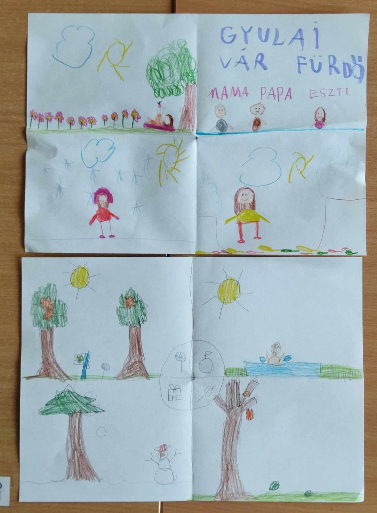 A foglalkozás eleji relaxációs gyakorlat után elolvastam „A tizenkét hónap” című mesét. Mindenki elmondta, melyik évszak és hónap a kedvence és miért. Majd Bagdi Bella dalait hallgatva elkészítették rajzaikat, melyen azt ábrázolták, hogy melyik évszakot miért szeretik. Mert minden évszakban van valami jó, szép.. 😊