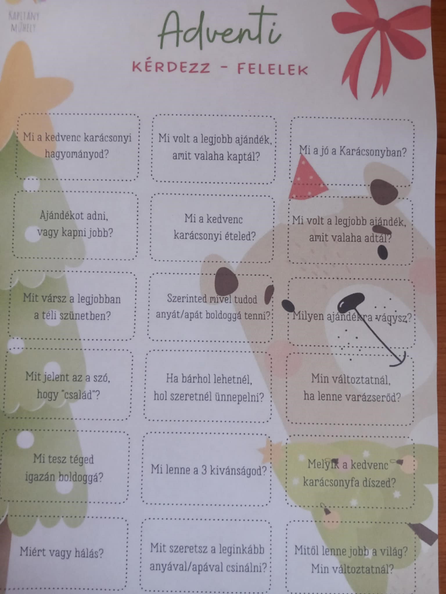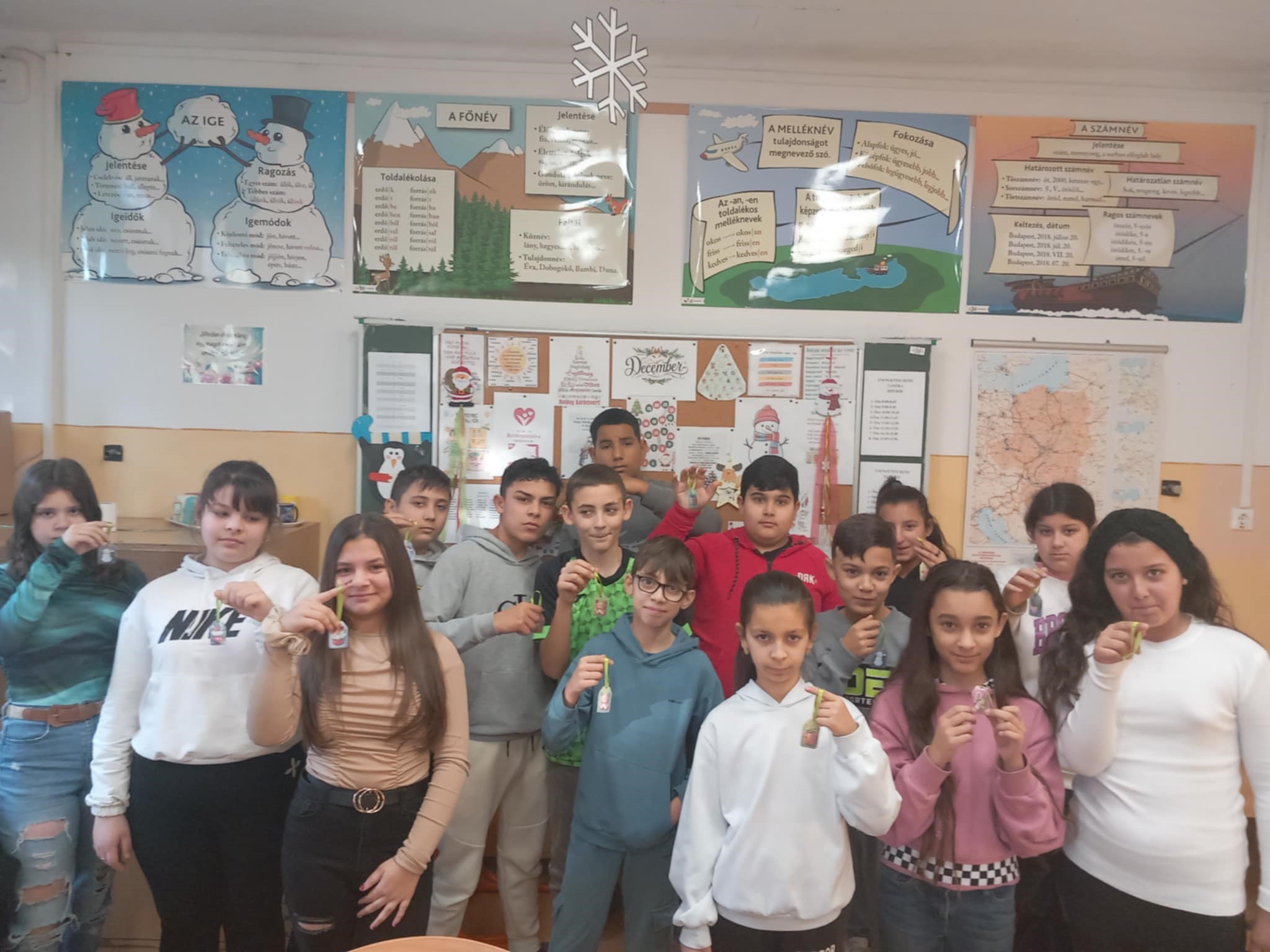 December az adventi várakozásról, az ünnepre való hangolódásról szól. A mi osztályunkban sem volt ez másképp. Boldogságóránkon apró ajándékot készítettek a gyerekek, ráírva nevüket, majd egy kalapból húzott mindenki egyet az elkészült csekély, de szeretettel készült fenyődíszből. A gyerekek munka közben adventi kérdezz-feleleket játszottak, osztályfőnökük irányításával. Szép gondolatok hangzottak el arra a kérdésre, hogy mi tesz igazán boldoggá, miért vagy hálás, ajándékot kapni vagy adni jobb, mitől lenne jobb a világ? Az elkészült, kihúzott ajándéknak örültek a gyerekek, megbeszéltük, hogy mindenki felteszi az otthoni karácsonyfájára.