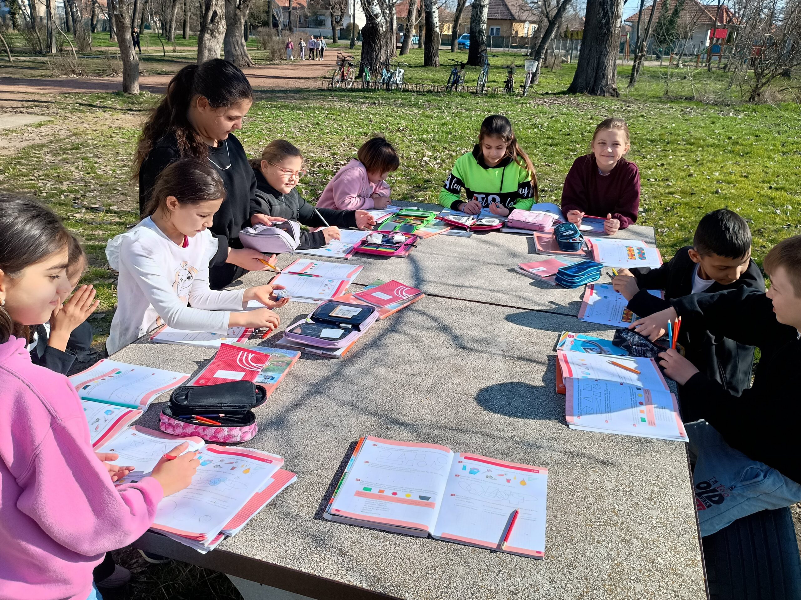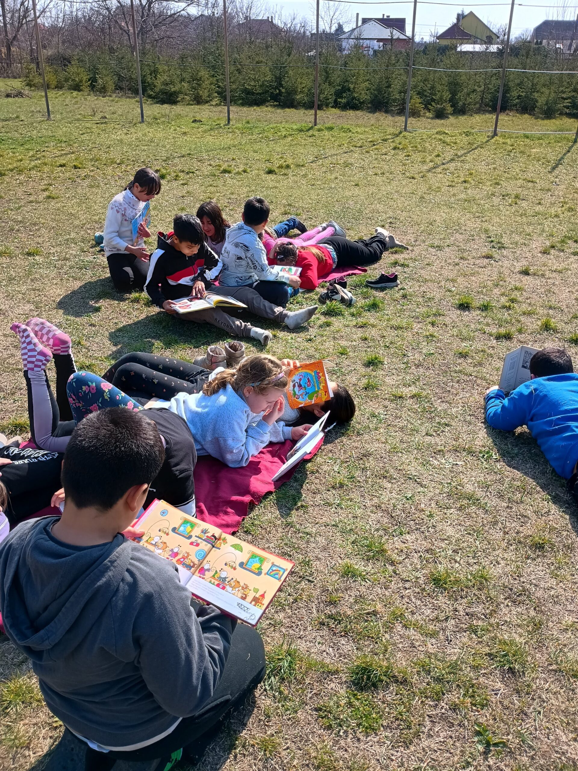 A természet adta lehetőségeket kihasználva a szabadban, napsütésben olvastunk, fára másztunk, matematika órát tartottunk.