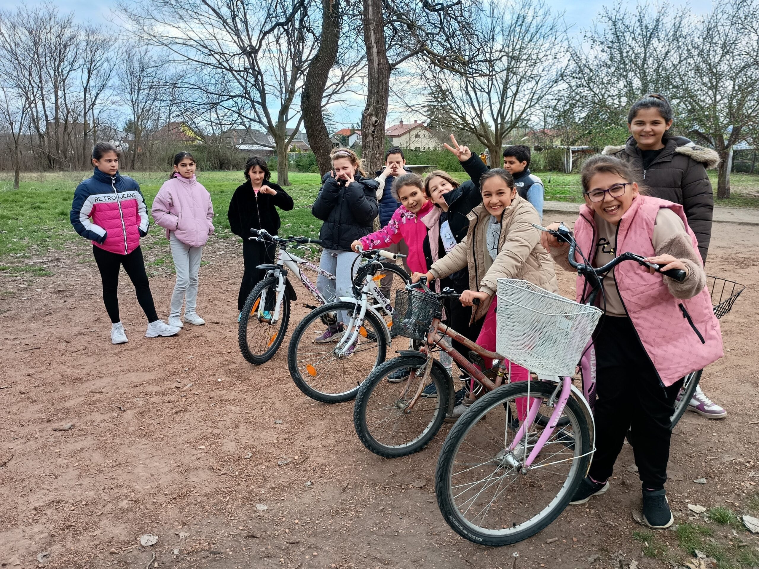 A mozgás örömét bringás foglalkozás keretein belül is megtapasztaltuk. Volt, aki korábban még nem ült kerékpáron, természetesen ő sem maradt ki a mókából, egyensúlyérzékét fejlesztve futóbicikliként használva a kerékpárt teljesítette a feladatokat. Csillogó szemekkel, nagy örömmel tekertek a többiek is az akadálypályákon.