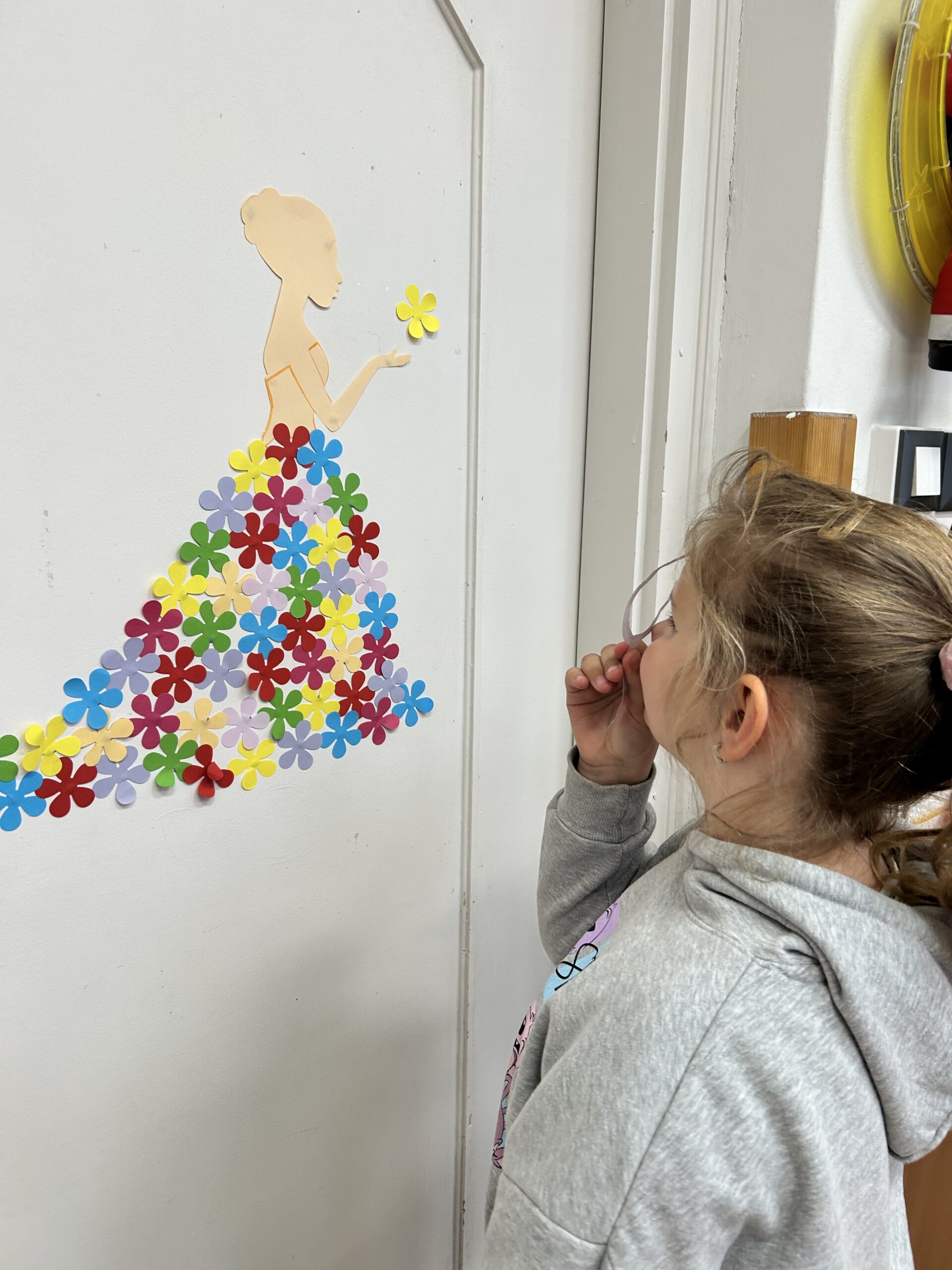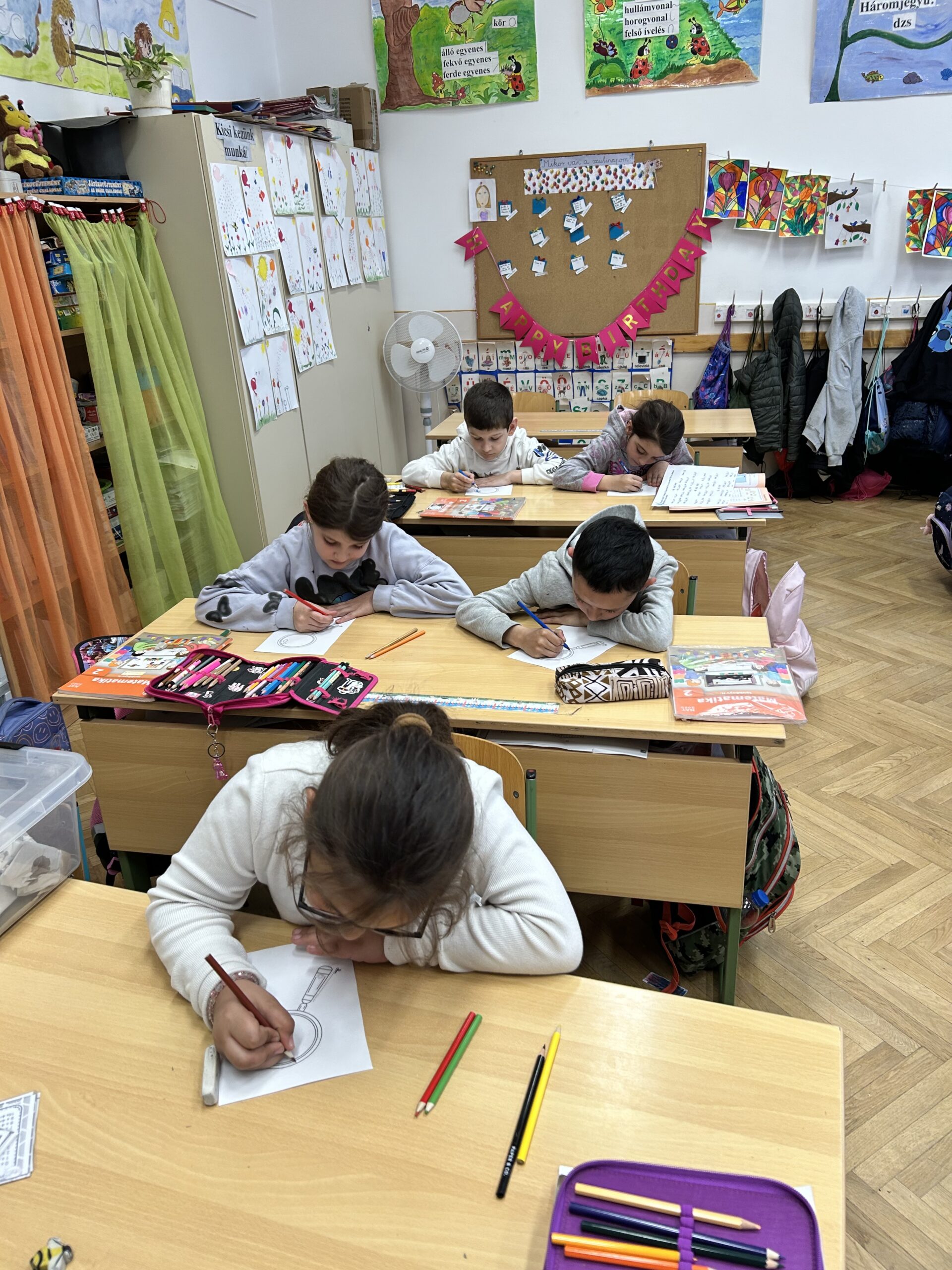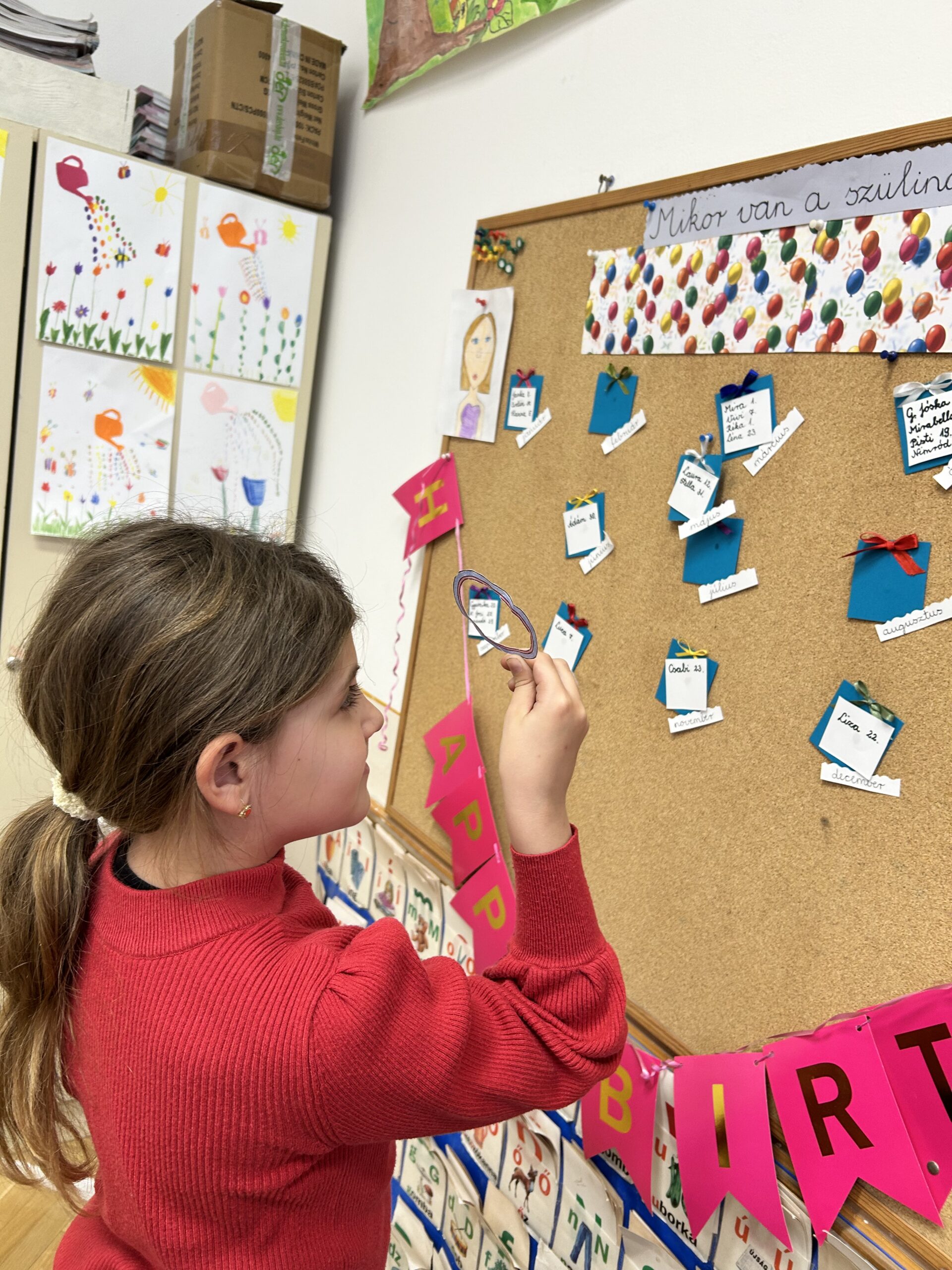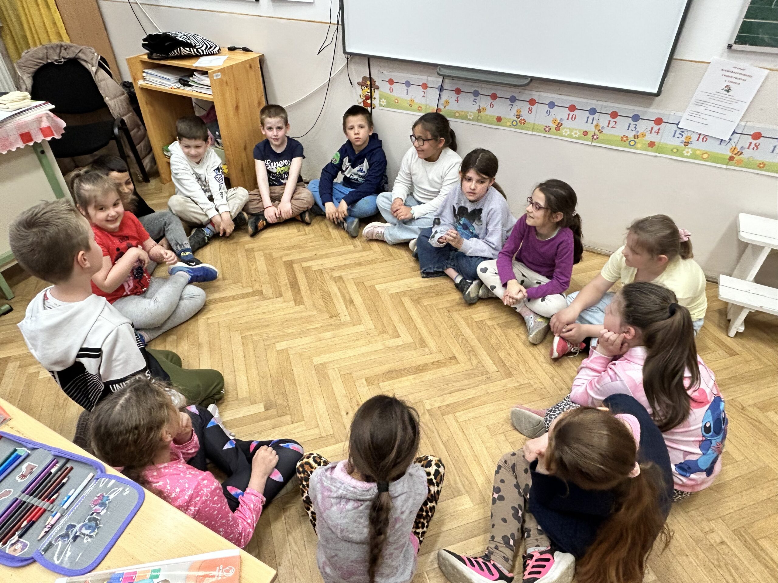 A boldogságóra témája az „Apró örömök az élvezete” volt, amely során a gyerekekkel közösen fedeztük fel a mindennapok szépségeit. Először megtekintettük „A kisegér meg a ceruza” című mesét, ami segített ráhangolódni a témára. Ezt követően irányított beszélgetés keretében feldolgoztuk a látottakat, és mindenki megoszthatta a gondolatait. Ezután kivágtuk az Örömkereső nagyítót, és a teremben kerestünk vele apró örömforrásokat. Sok érdekes és kedves dolgot találtunk, amelyek boldoggá tehetnek bennünket a hétköznapokban is. Végezetül nagy körbe ültünk, és közösen eljátszottuk az „Apró csodák boltja” játékot.