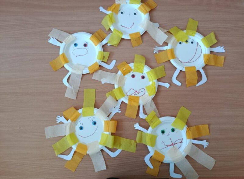A Nyuszi csoportban március 20-án, a boldogság napja alkalmából „boldog napocskát” készítettek a gyerekek. A foglalkozás során lelkesen rajzoltak mosolygós arcot, majd vidáman ragasztották fel a napsugarakat. Külön örömet jelentett számukra, hogy a napocska kezeket és lábakat is kapott, így még játékosabbá és személyesebbé vált az alkotás. A tevékenység hozzájárult a pozitív érzelmek kifejezéséhez, valamint fejlesztette a finommotorikát és a kreativitást.