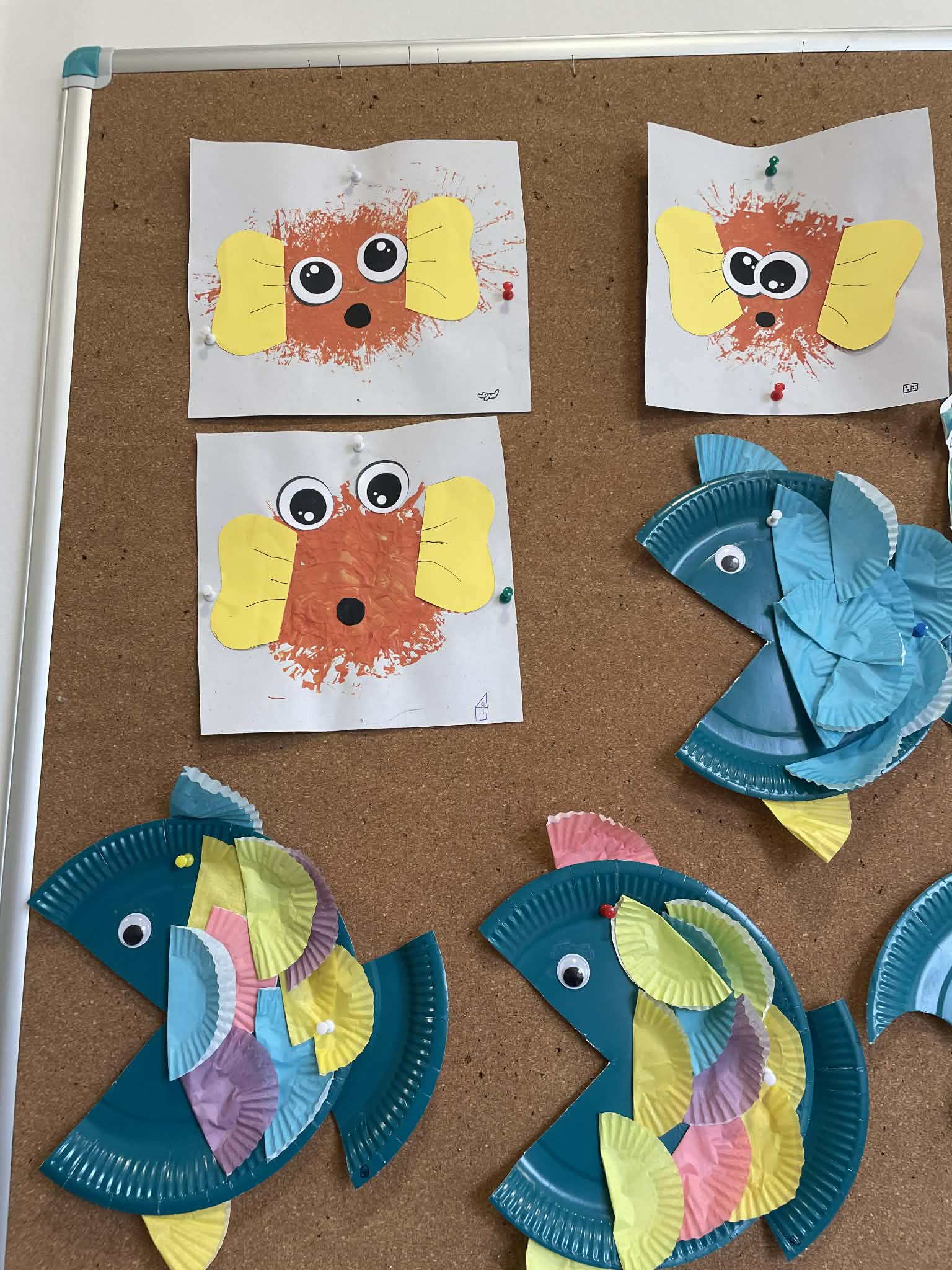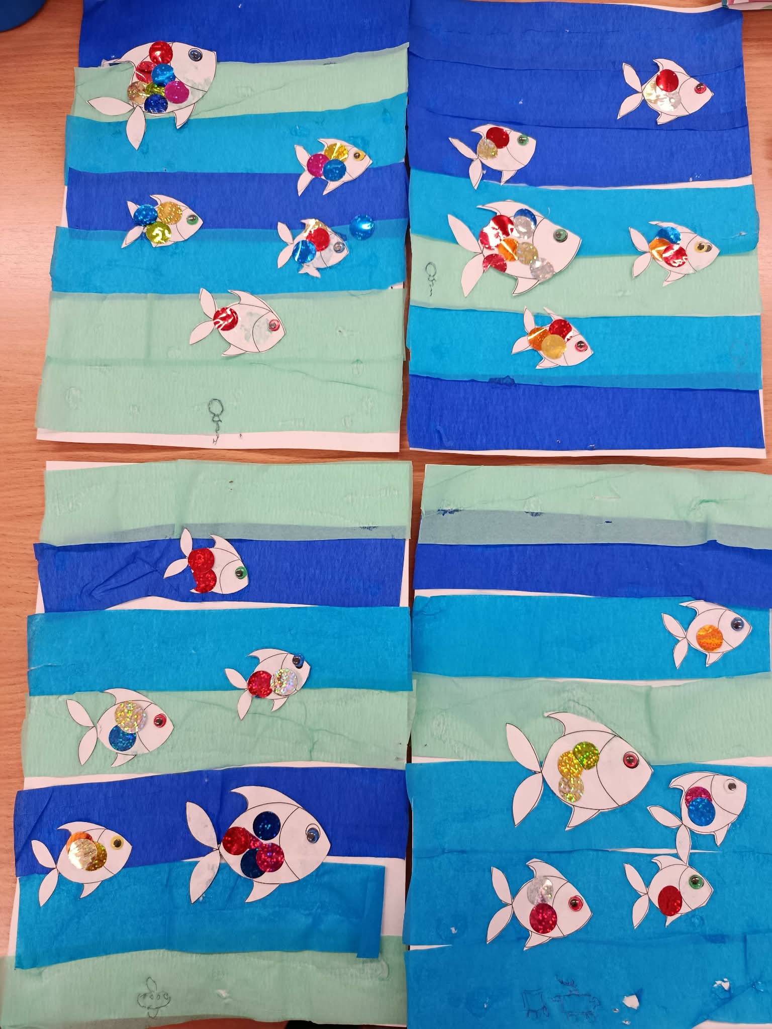 Március 22-én, a víz világnapjához kapcsolódva a Nyuszi csoportban a „tenger” témát dolgozták fel. A gyerekek ragasztásos technikával készítették el saját tengeri világukat, majd flitterekkel díszített halakat alkottak, amelyeket elhelyeztek a „tengerükben”. A tevékenység során aktívan és örömmel vettek részt, fejlődött kreativitásuk, szem-kéz koordinációjuk és feladattartásuk, miközben játékos formában ismerkedtek a víz fontosságával.