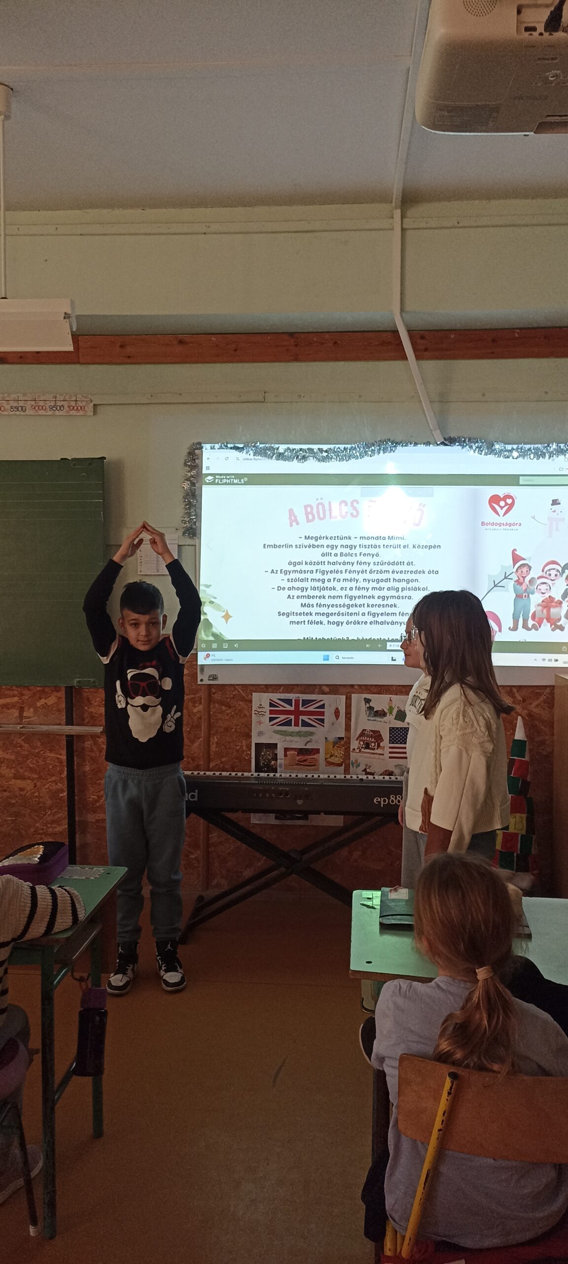 A decemberi zsúfolt programokba sikerült becsempészni a jó cselekedeteket is a téli szünet előtti napokban megtartott Boldogságóránkon a Bonyhádi Általános Iskola 4.c osztályában.