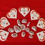A terv szerint lapos, sima kavicsokat kerestünk, később „kövéreket” is. Fehér festékkel a kavicsok inden oldalát befestették a gyerekek, majd a felnőttek dolgoztak tovább vele. Piros szivecskék és kontúr került a kavicsokra.