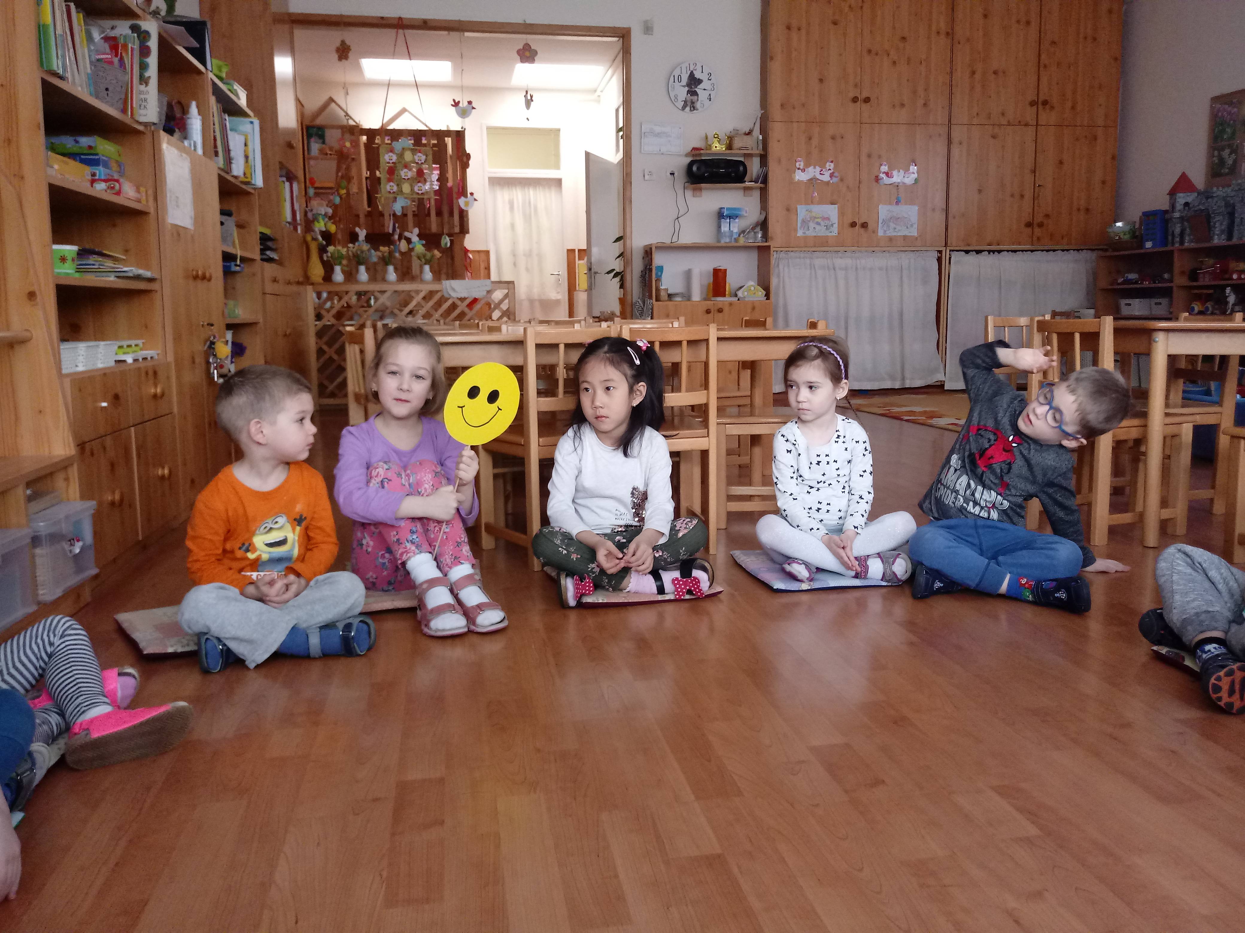 A boldogságóra keretén belül a csoportunk közös programjairól tekintettünk meg fotókat a laptopon.Megbeszéltük, hogy milyen sok kellemes élményben volt részünk sokat nevettünk, örültünk és vidámak voltunk.Kitértünk arra is, hogy sok apró öröm vesz bennünket körül a mindennapi életben.A beszélgető körben szmájli fejet adtunk körbe és mindenki elmondhatta, hogy mi az ami számára örömet okoz.Nagy öröm volt számomra, hogy a szeretet, az ölelés, a mások segítéseb stb fogalmak kerültek előtérbe a tárgyi örömökkel szemben.