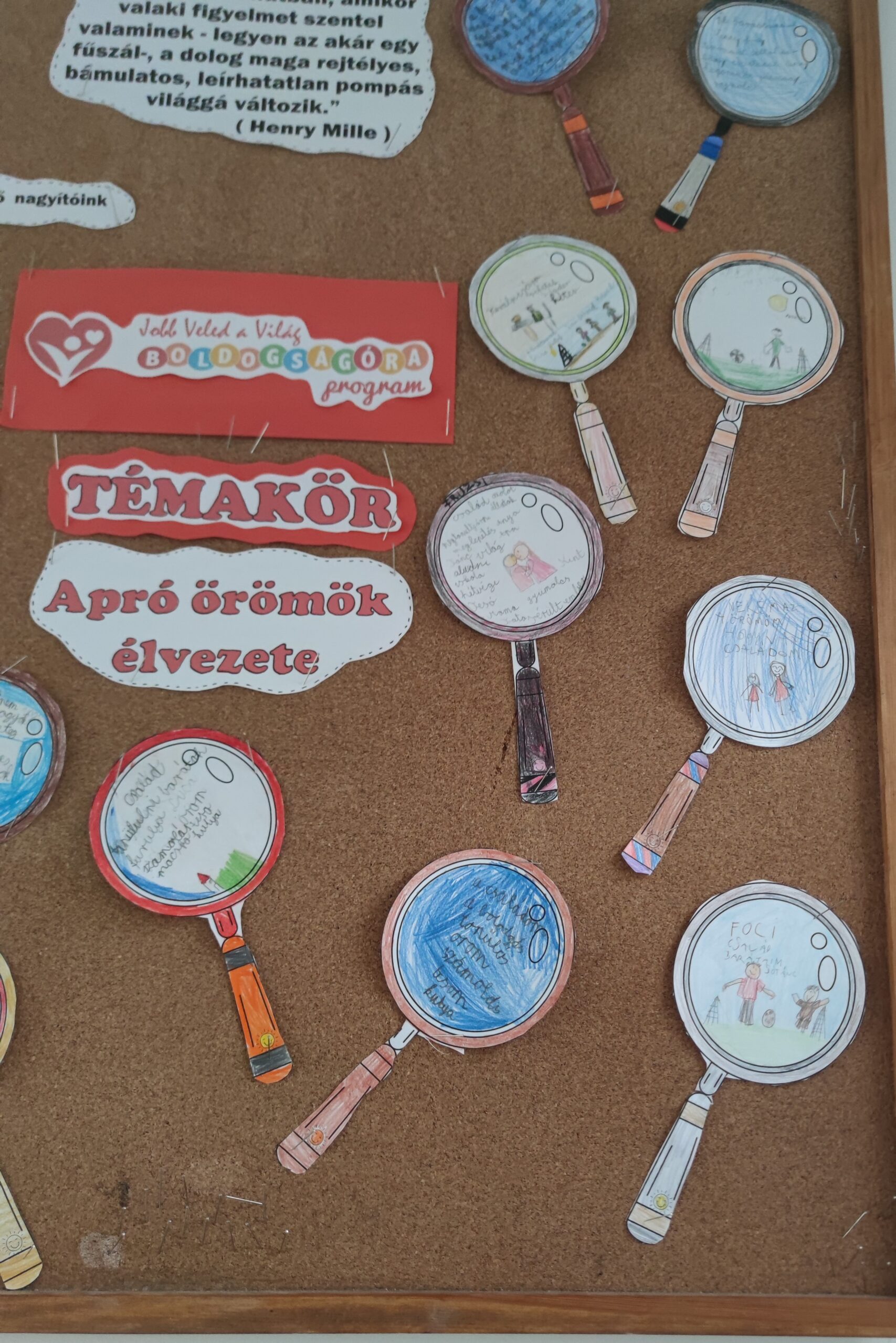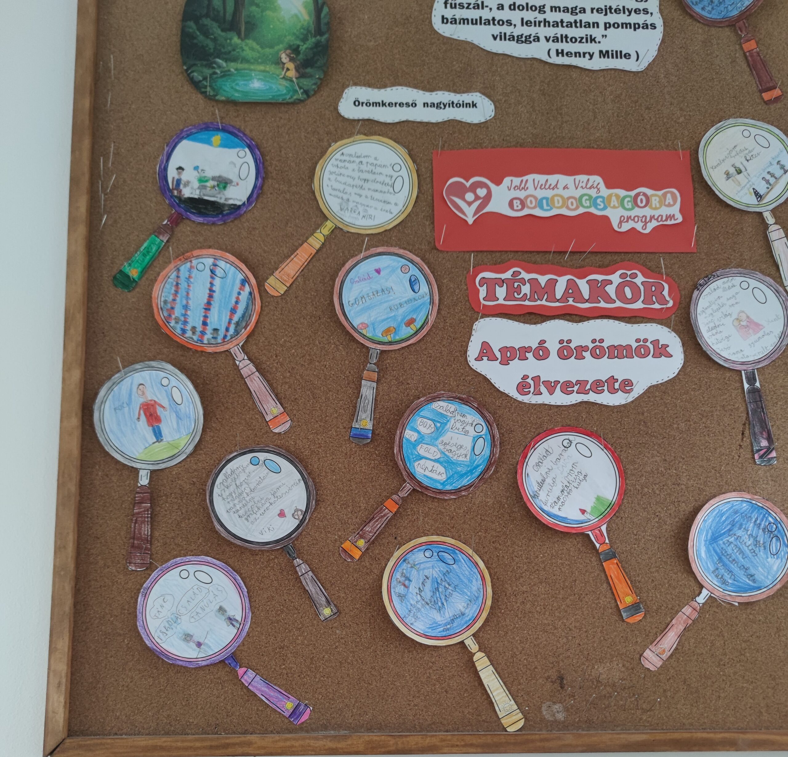 A boldogság, öröm meghatározza a gyerekek mindennapjait. Ez a mozgatórugója életüknek. Rádöbbenni, hogy mi mindenben látják meg az örömet, boldogságot, igazán érdekes látvány volt. E témában rengeteg észrevételük van, beszélgetéseink, játékaink során döbbennek rá azokra az apró örömökre, amelyek eddig is körülvették őket, de nem tulajdonítottak jelentőséget neki.