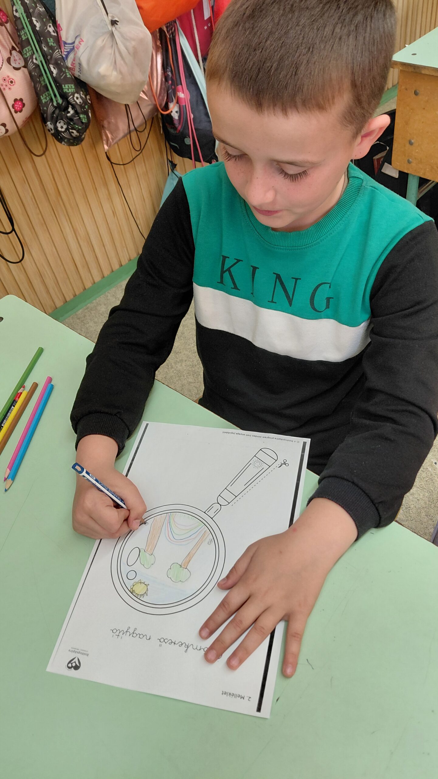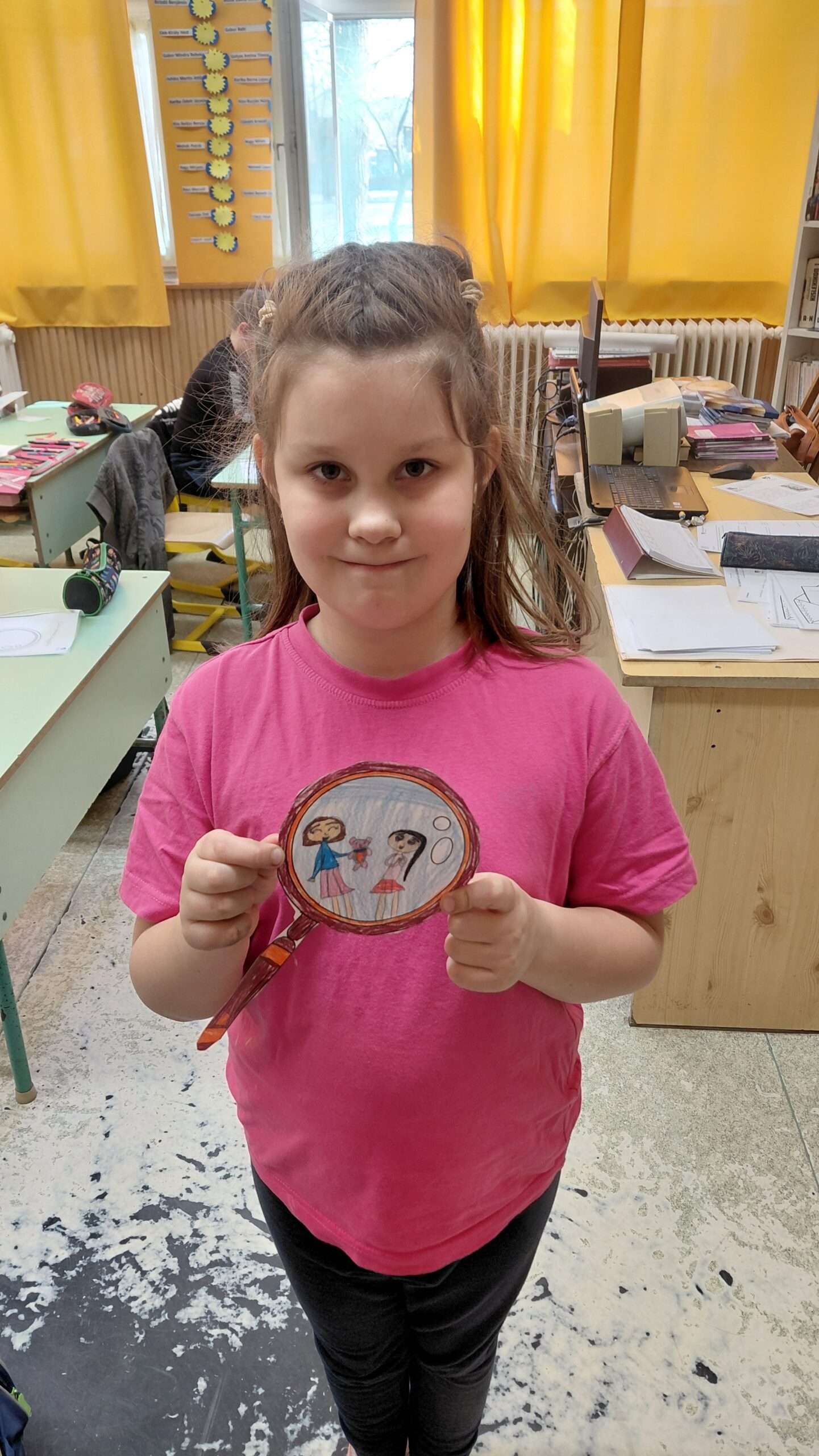 Örömkereső nagyítót készítettünk: mindenki lerajzolt egy-két olyan dolgot a nagyítóba,amelyek boldoggá teszik őket.