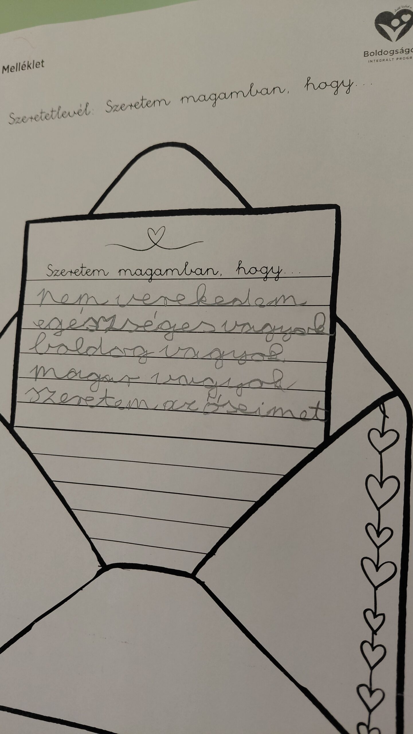 Ezután Szeretetlevélben fogalmazták meg a gyerekek,hogy mit szeretnek magukban.