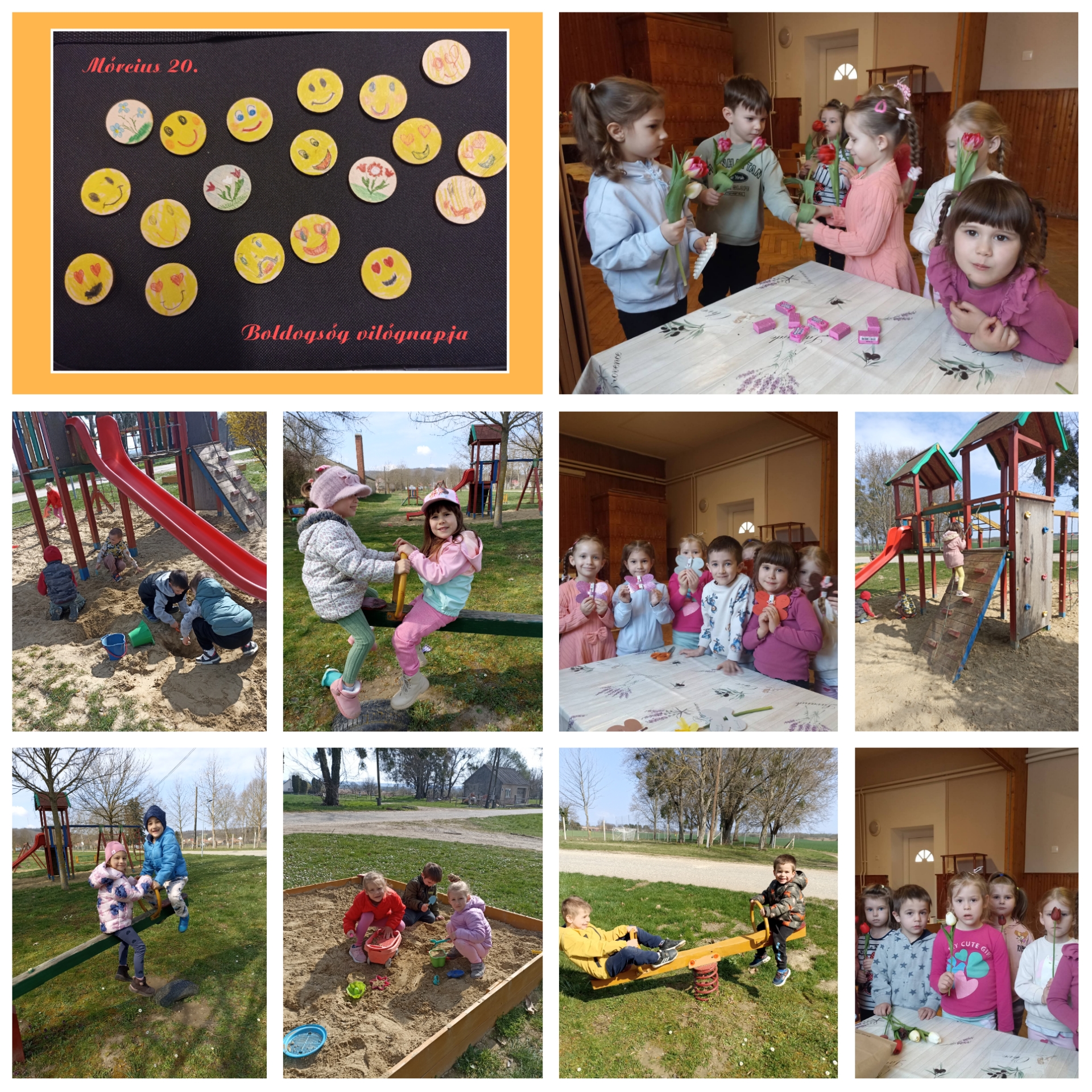 Boldogság világnapja – vèkony fakorongokra nevetős, mosolygós szmájlikat rajzoltunk.