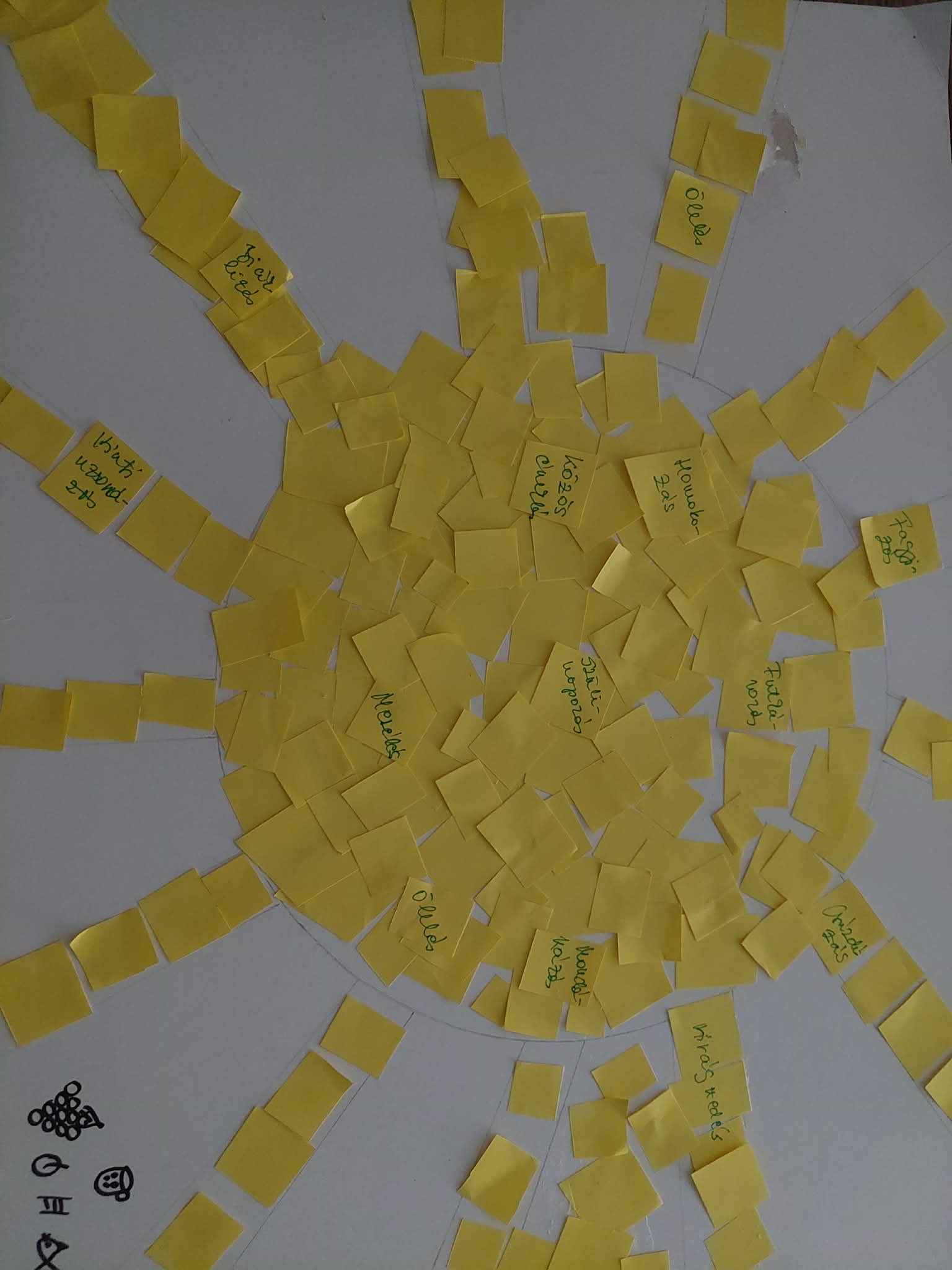 A foglalkozást egy közös relaxációs feladattal kezdtük. A gyerekek elképzelhették, ahogy a nap melege átjárja őket, nyugalmat és jókedvet árasztva. Kollektívan készítettek egy napocskát. A nap sugaraiba pedig óvó néni segítségével belekerültek különböző gondolatok, amit a gyerekek fogalmaztak meg.
