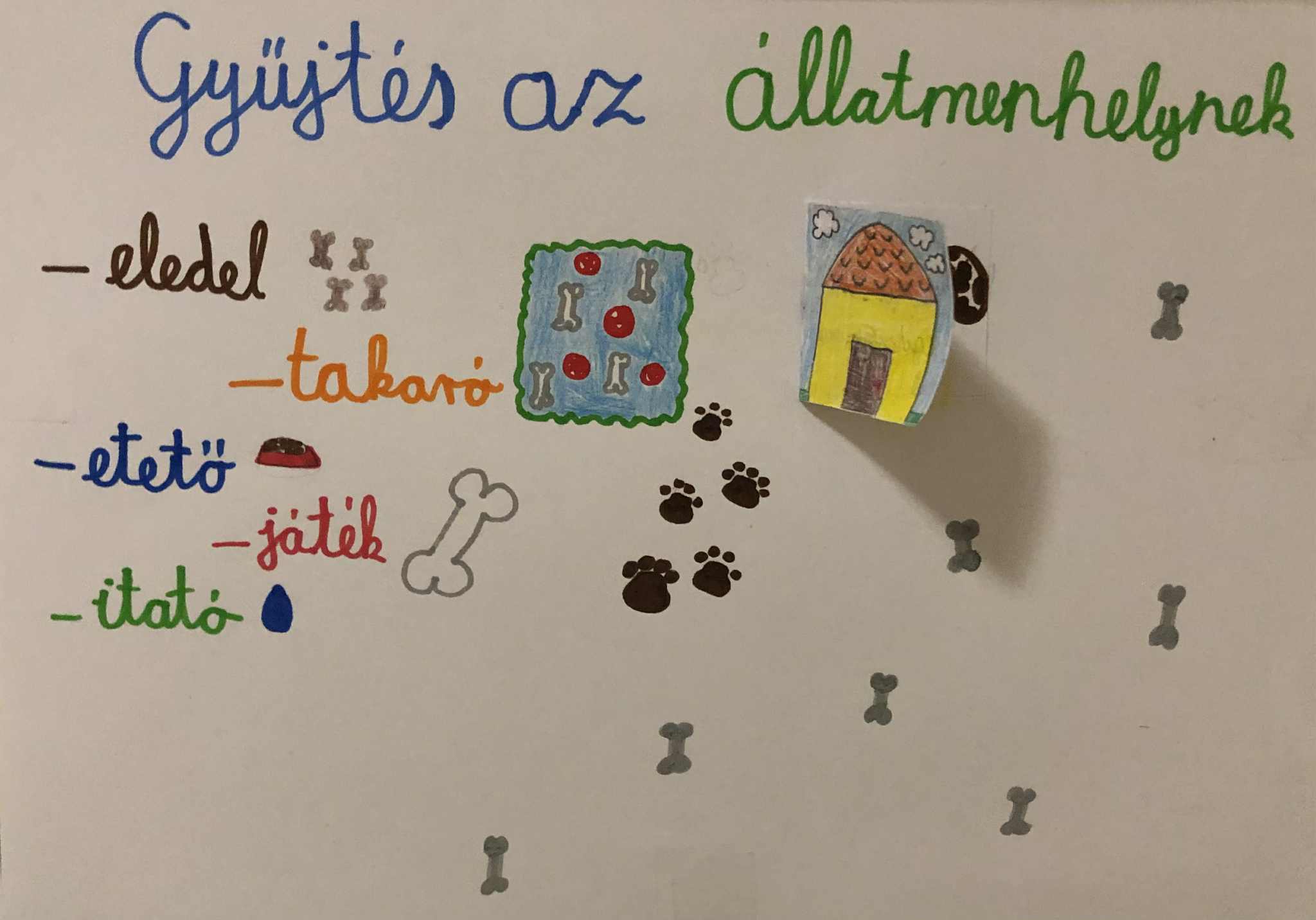 A projekt részeként az osztály adománygyűjtést szervezett a HEROSZ Állatmenhely számára. A gyerekek tápot, takarókat, játékokat és egyéb hasznos eszközöket hoztak be, az 5.b osztály pedig „50 Ft-os flakon gyűjtés” akciót indított, hogy anyagilag is segíthesse a menhelyet.