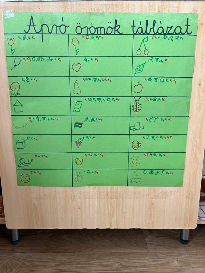 A tevékenység során kiemelt hangsúlyt kapott a szociális és érzelmi kompetenciák fejlesztése. A gyermekek fokozott figyelmet fordítottak egymásra, törekedtek társaik örömszerzésére, amelyet egy „apró örömök” táblázat segítségével is nyomon követtünk.