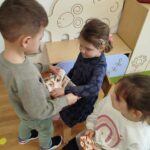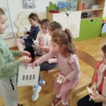 A tevékenységet a mondóka elsajátításával kezdtük, majd a fiúk köszöntötték a lányokat egy kedves kitűzővel, amit a kislányok nagy örömmel fogadtak.