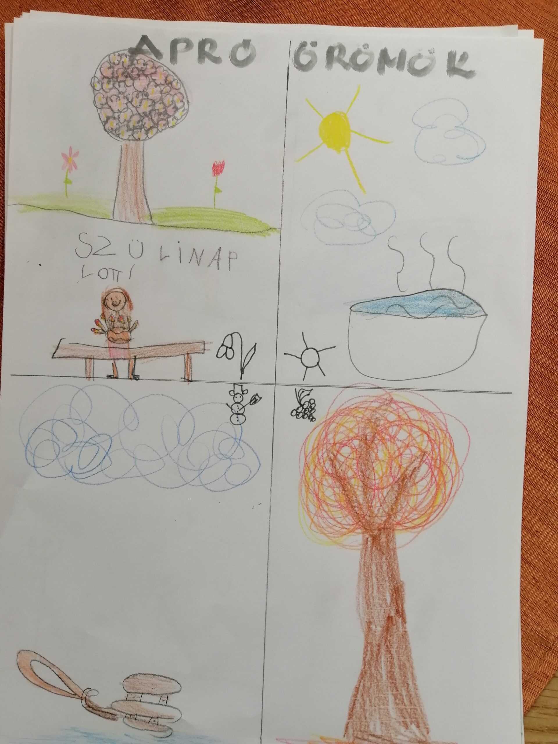 Kreatív feladat során mindenki rajzban is megjelenítette saját apró boldogságát.